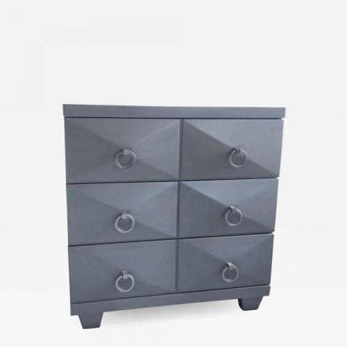 $14,000"Pair of Modernist Dressers. Designed by Lorin Jackson for Grosfeld House. Bleached walnut finished in grey color with nickel handles."