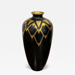 Art Deco Vase by Christofle. Dinanderie metal vase with an Art Deco design in gilt at top and neck on black body. Impressed with maker and model number on bottom. France c. 1925.