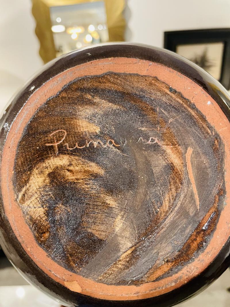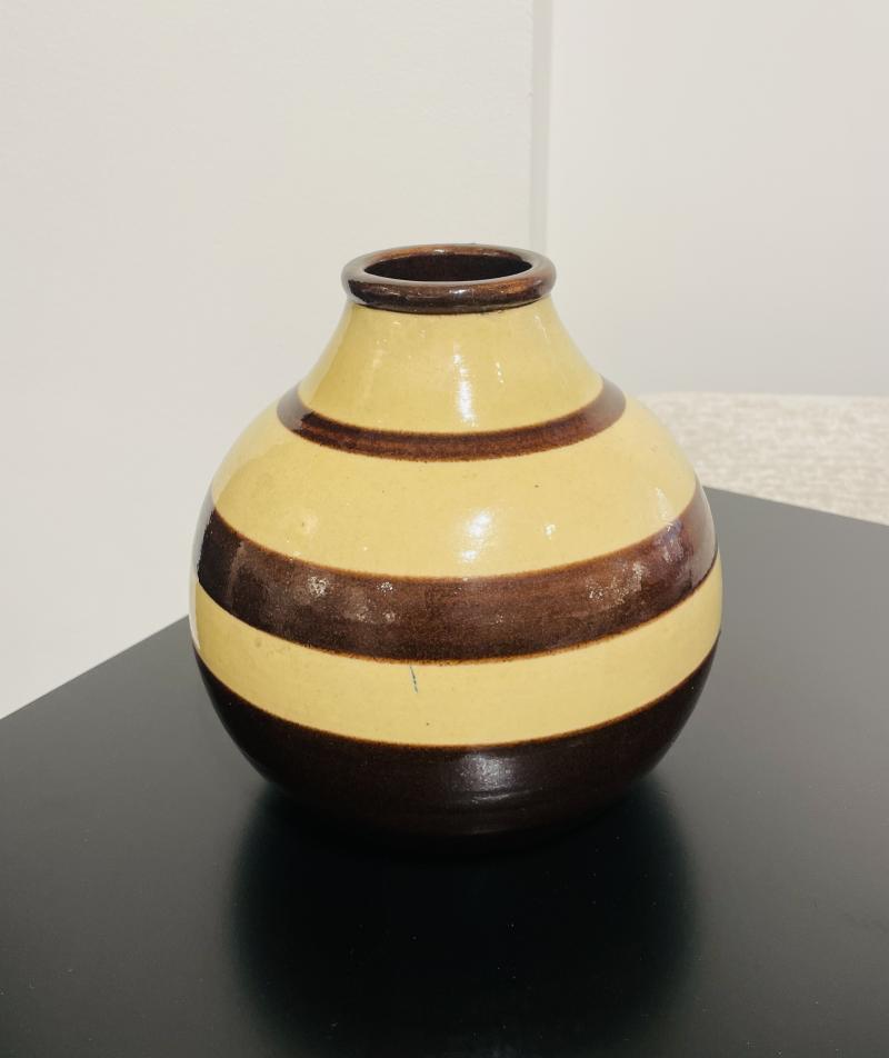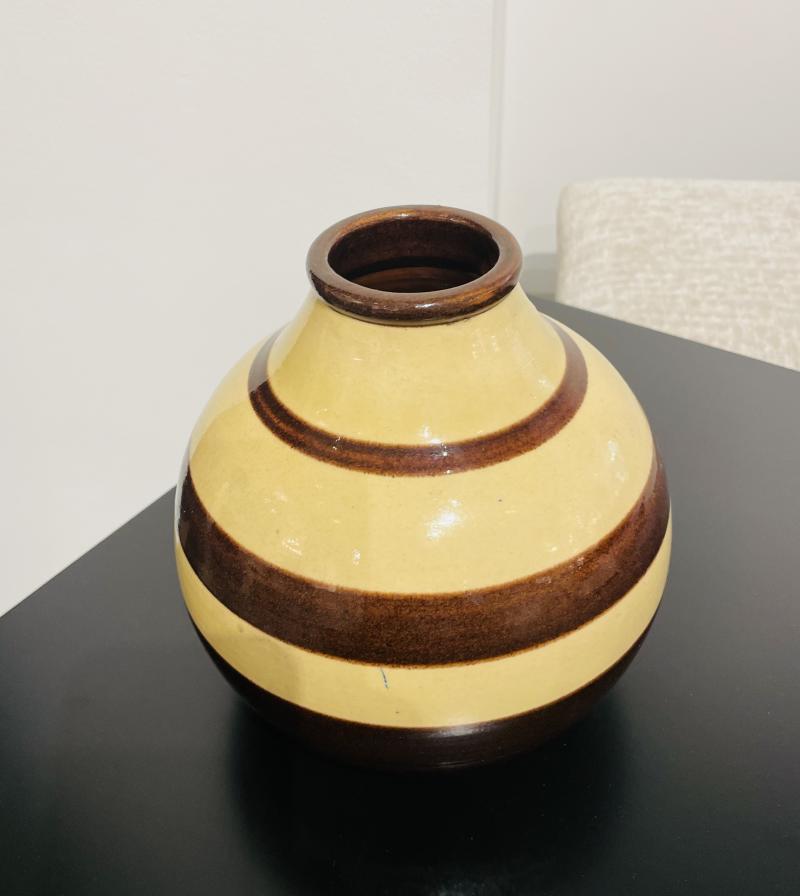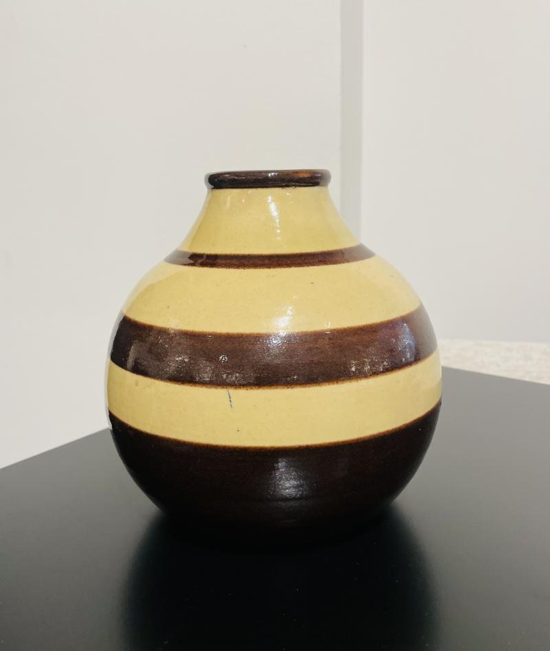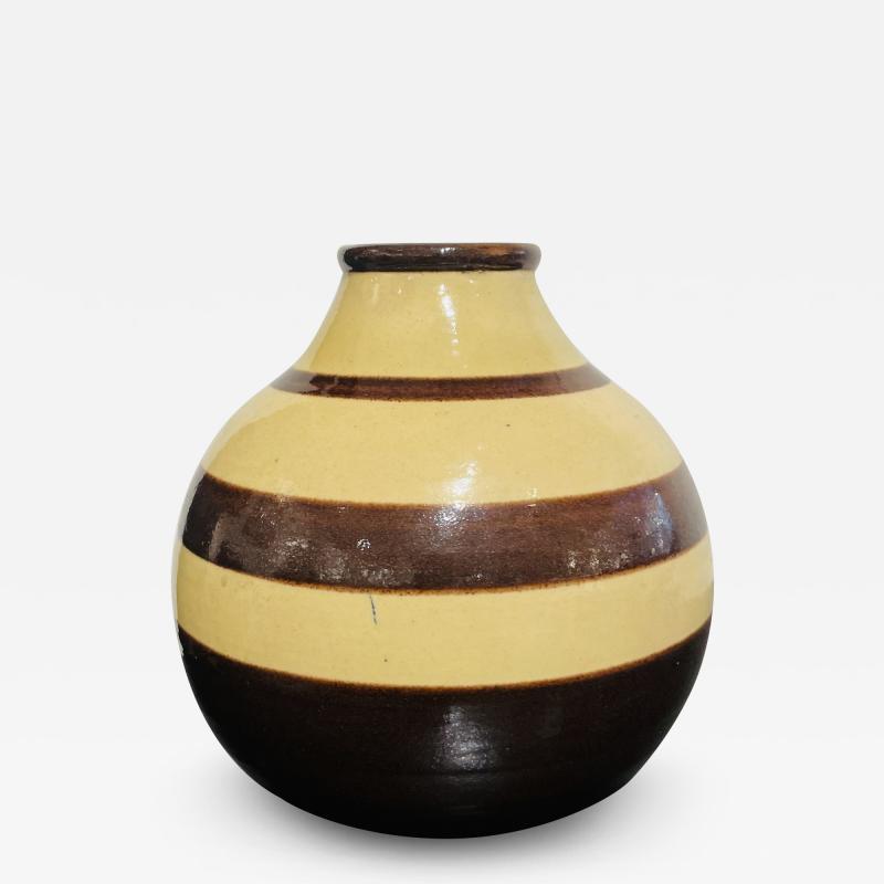 Art Deco Primavera vase glazed color band-design ceramic. From the fine department store Le Printemps’ revered design house at its peak during the Art Deco period. Signed underneath “ Primavera “ France 1930’s