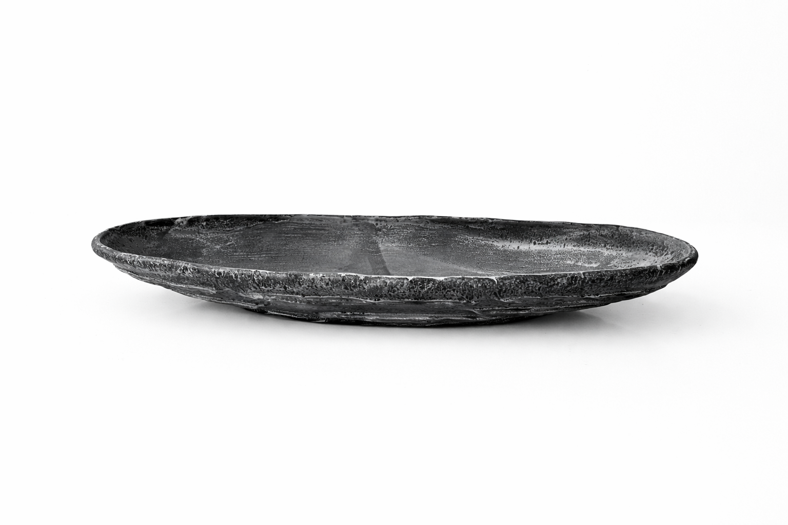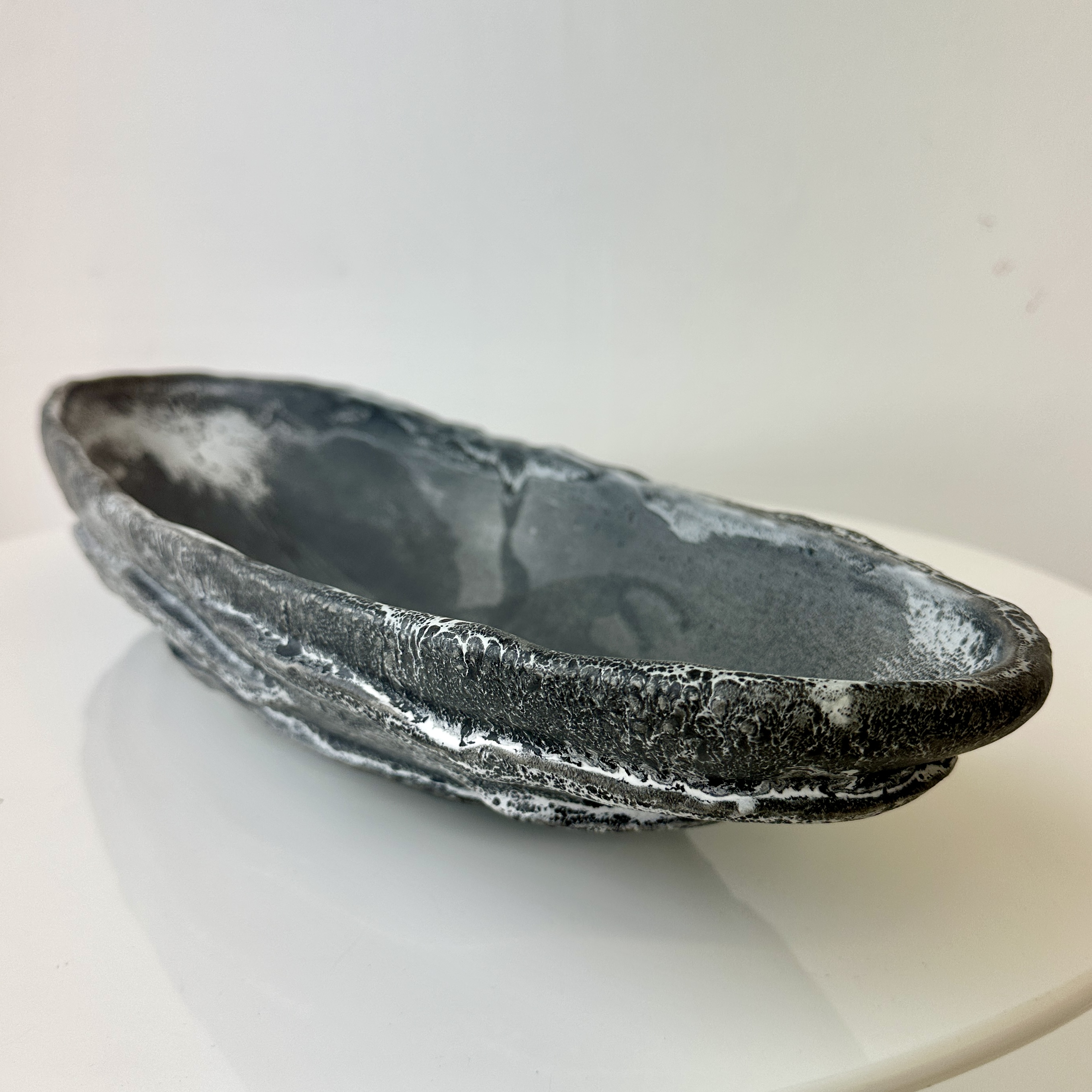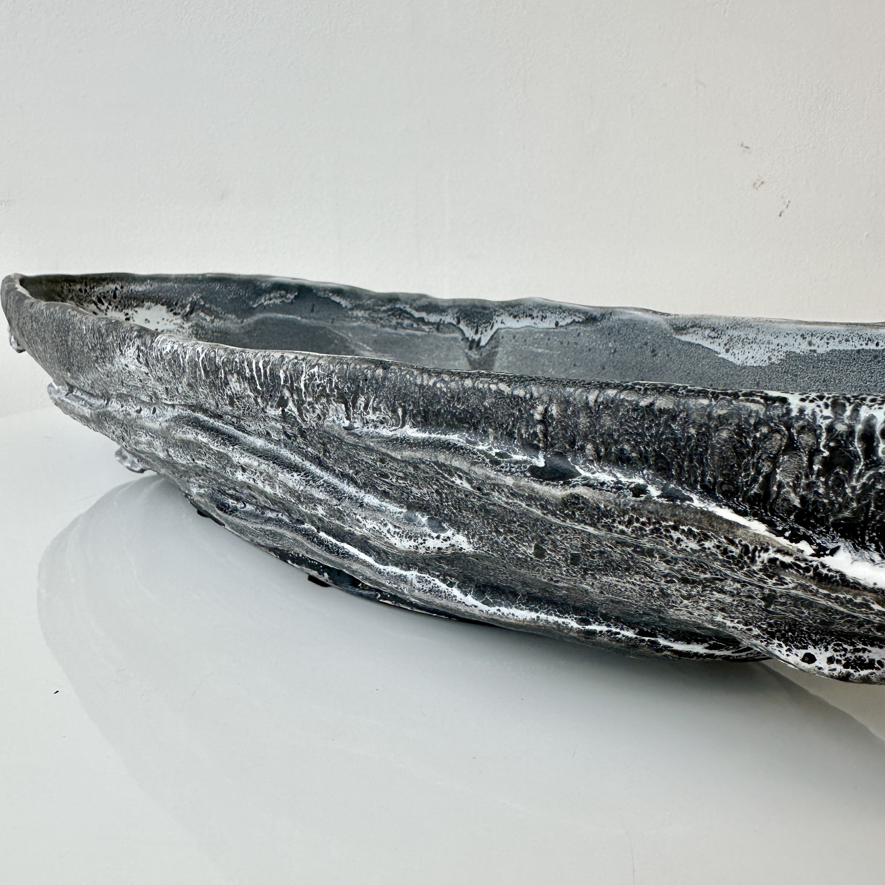 “Black, Grey and White Patterned and Textured Oblong Bowl by Aram C.”