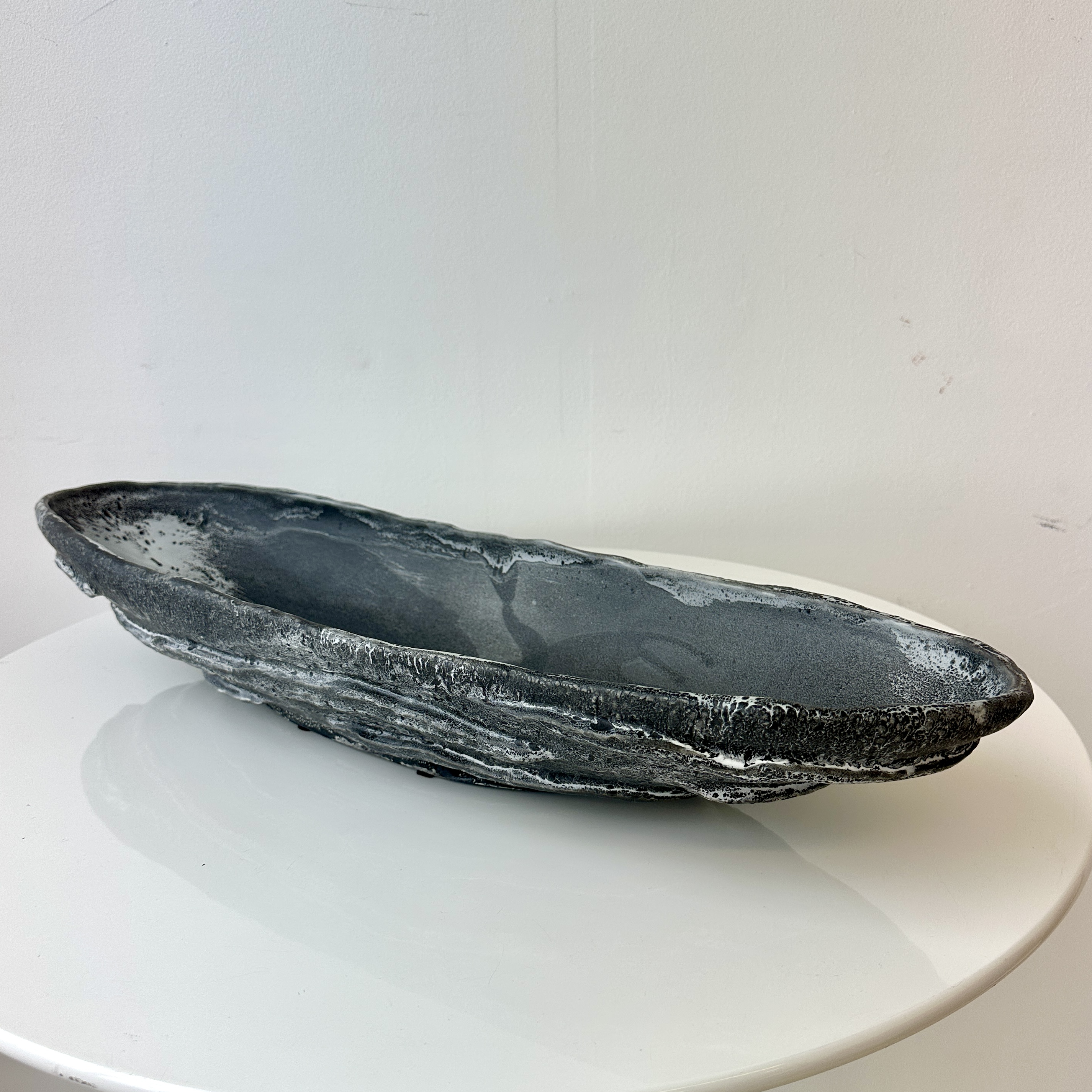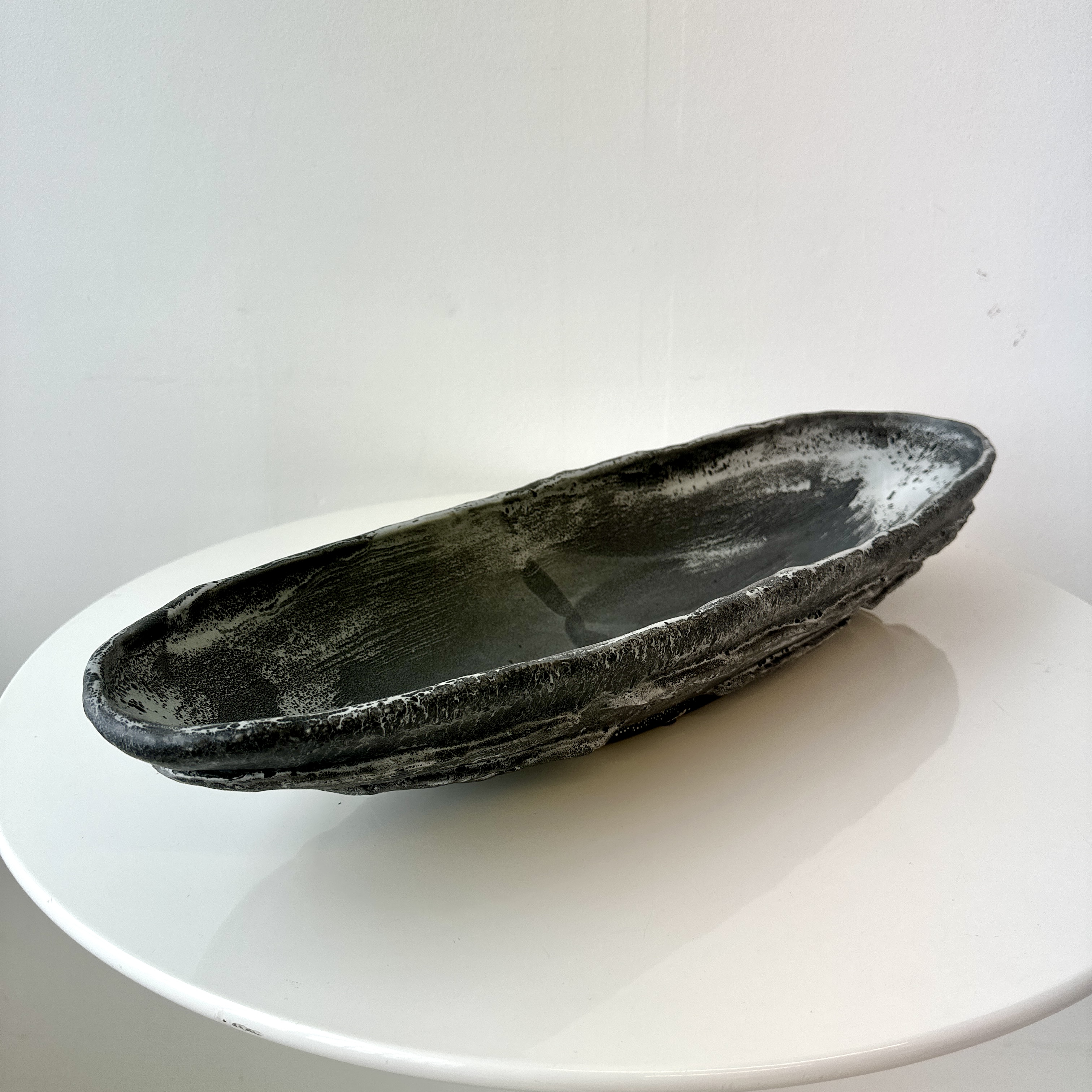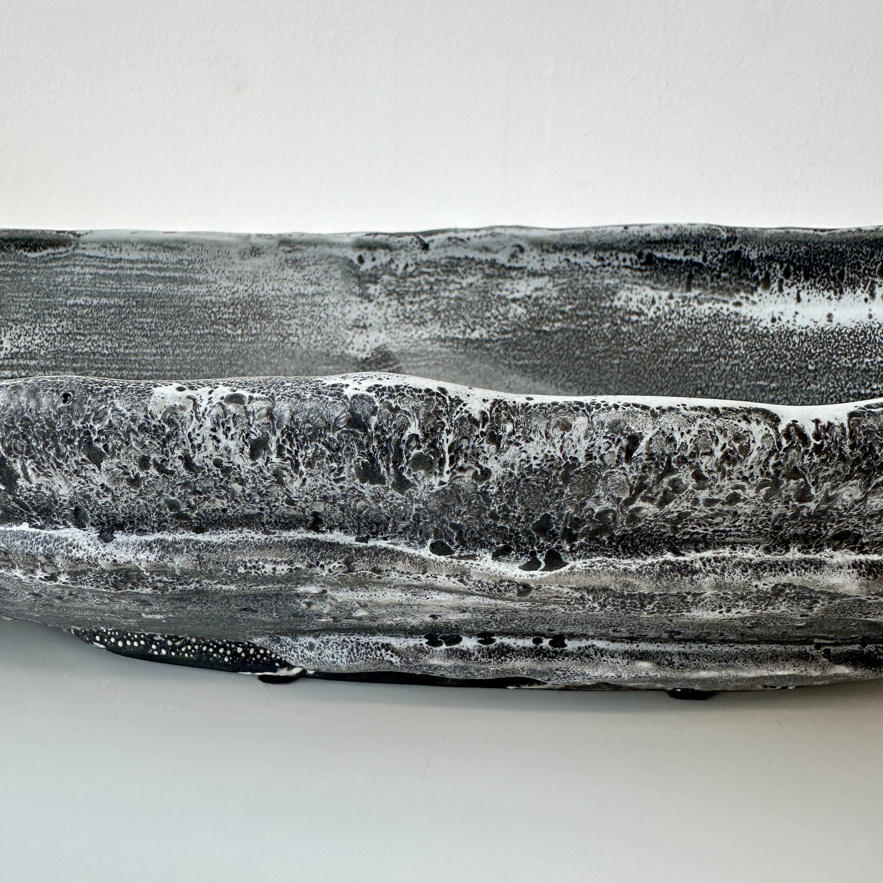 Black, Grey and White Patterned and Textured Oblong Bowl by Aram C.