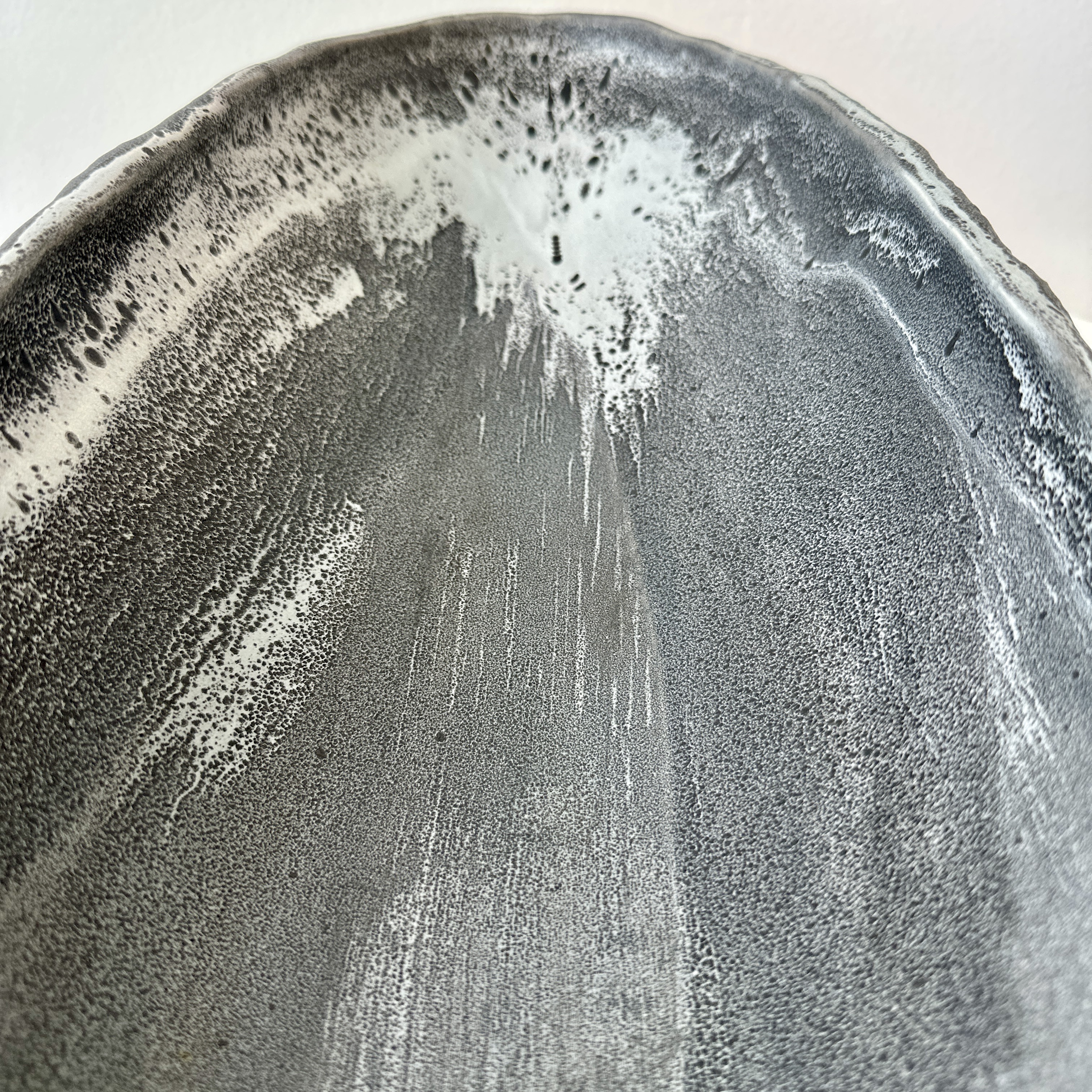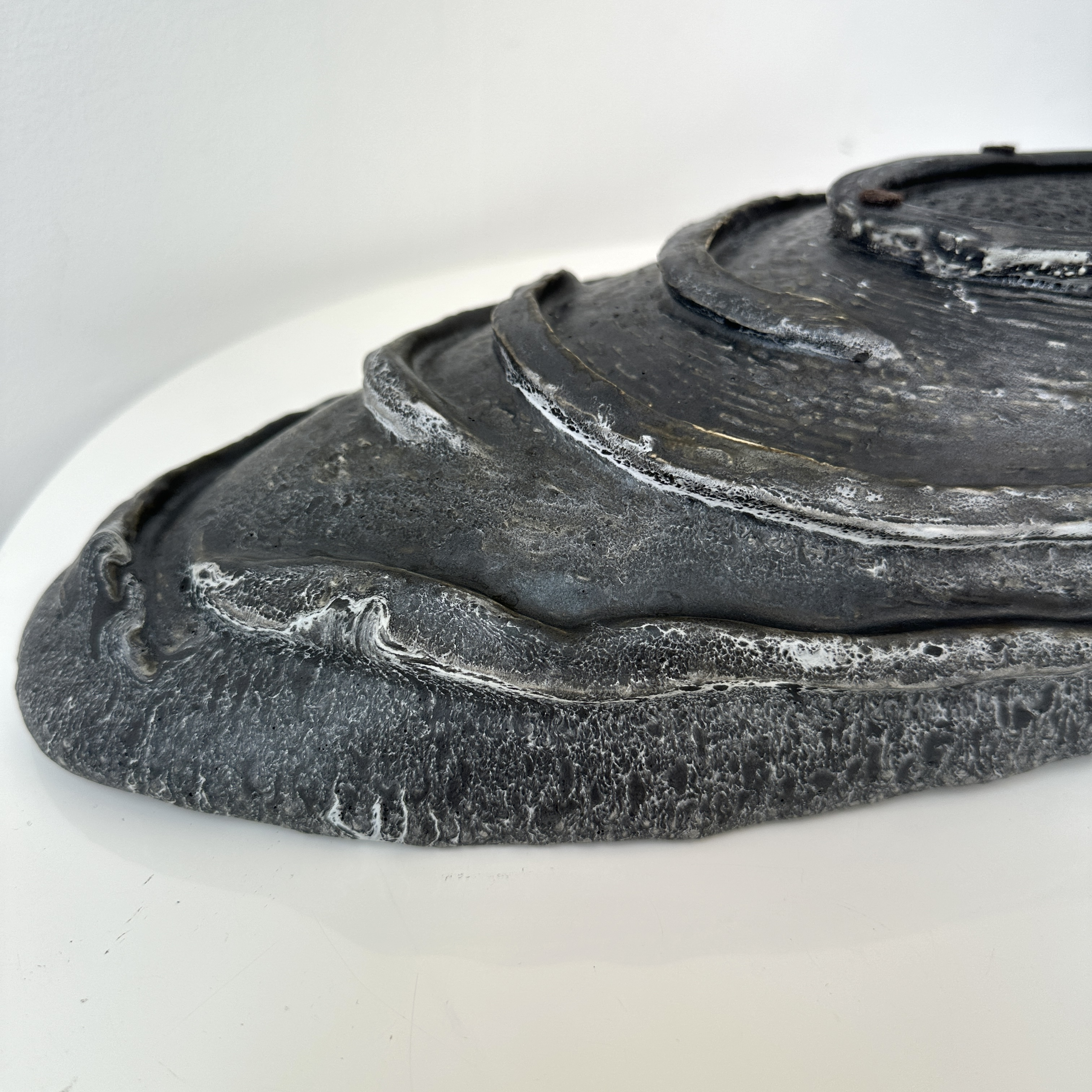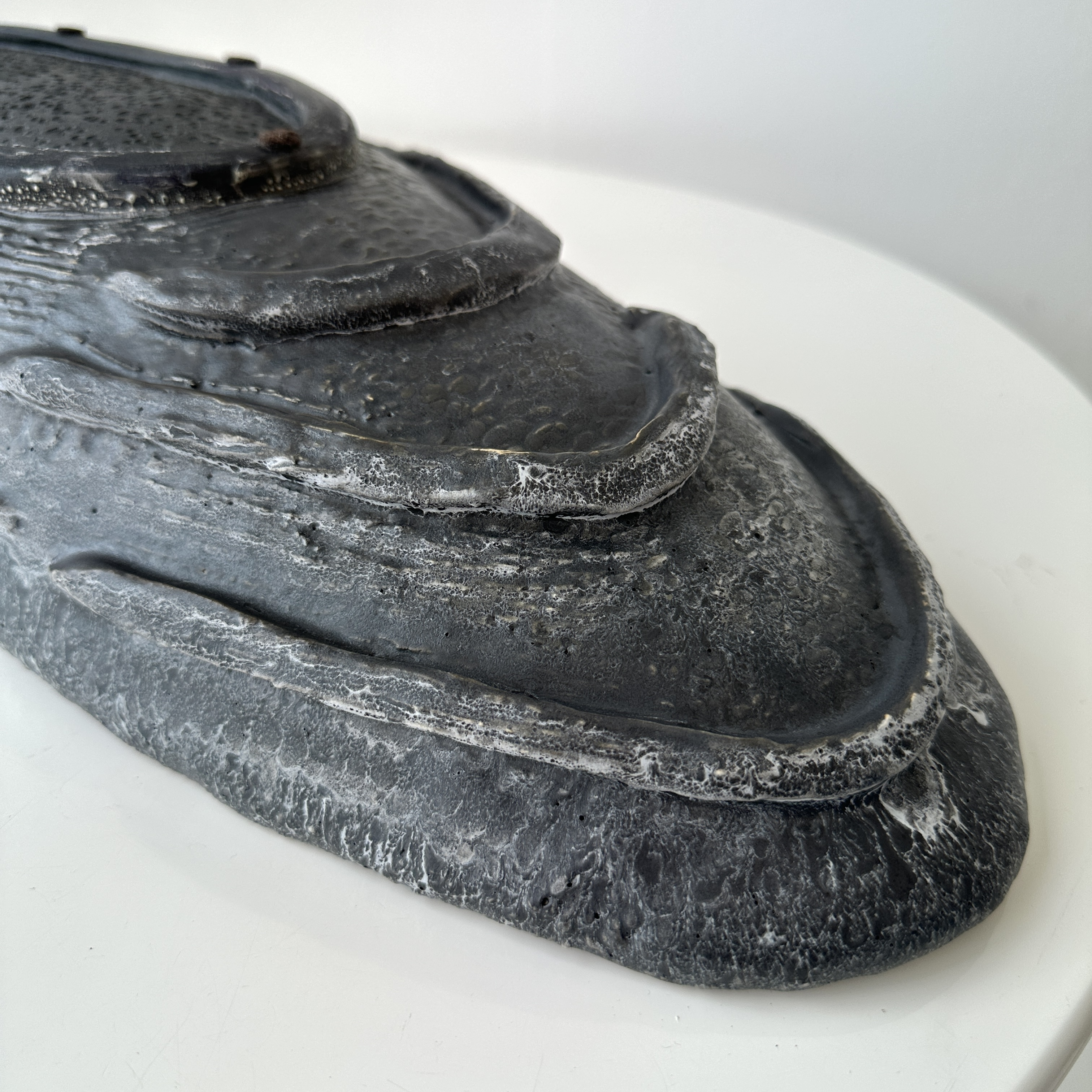 Pair of Ceramic Wave Platters in Platinum. Made By Aram C
