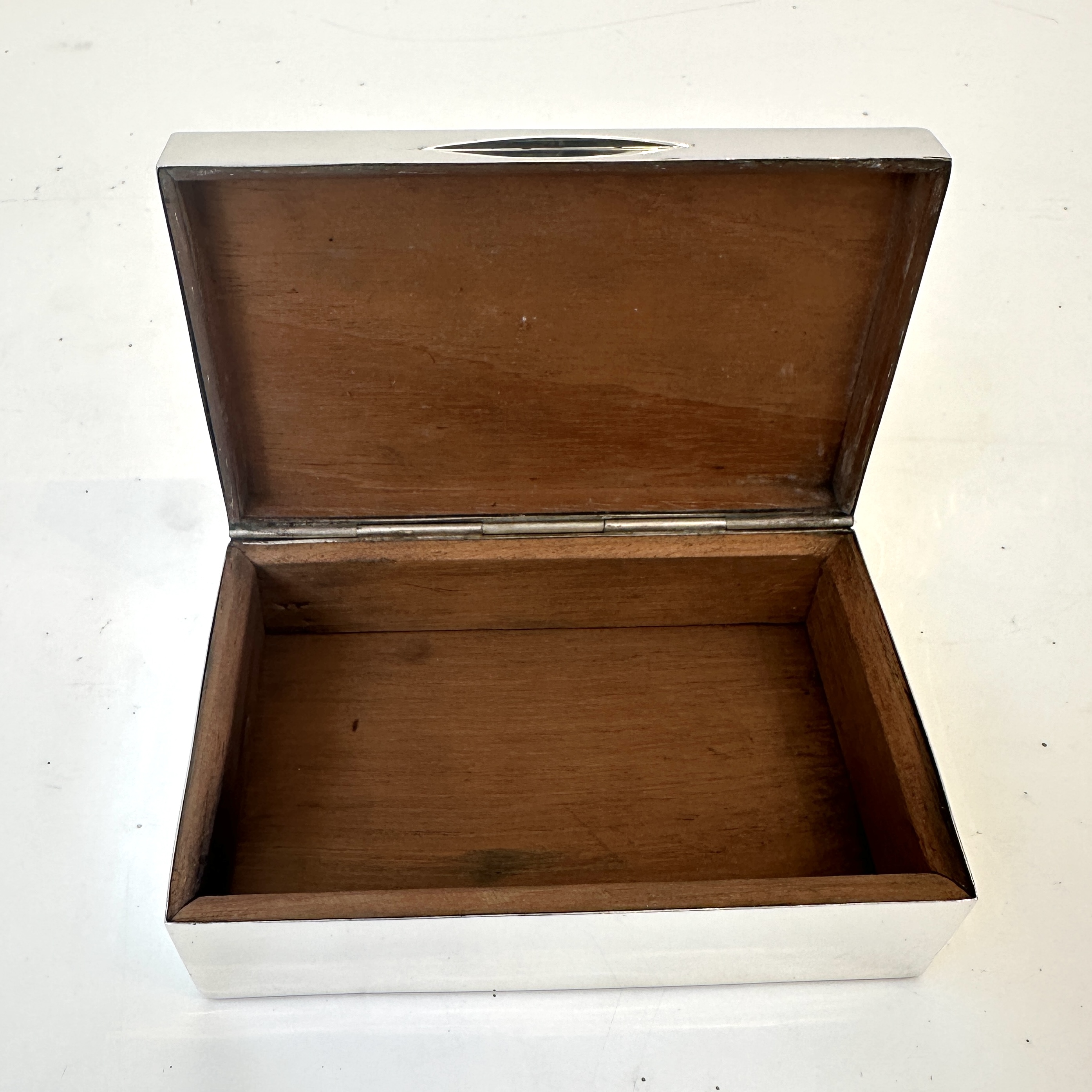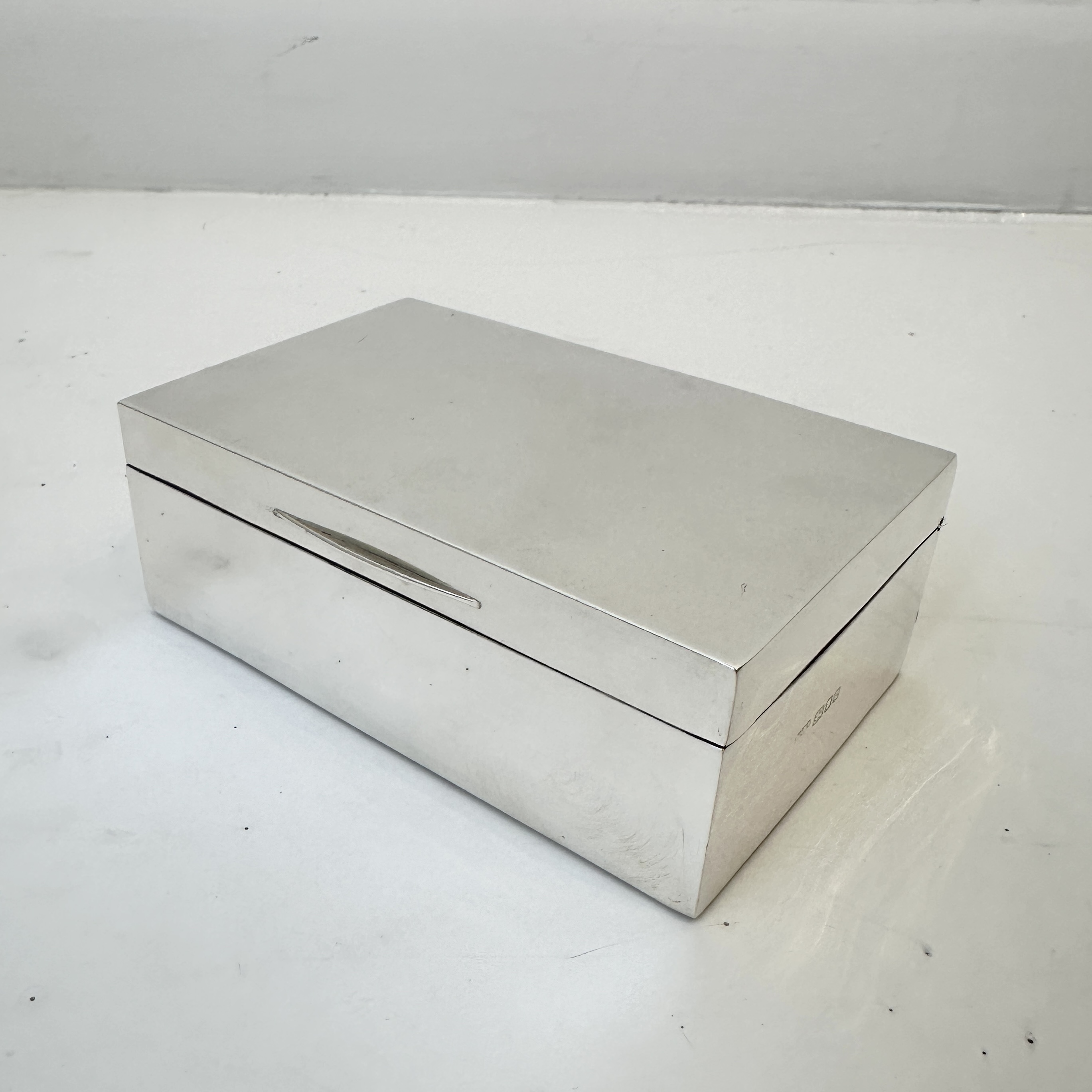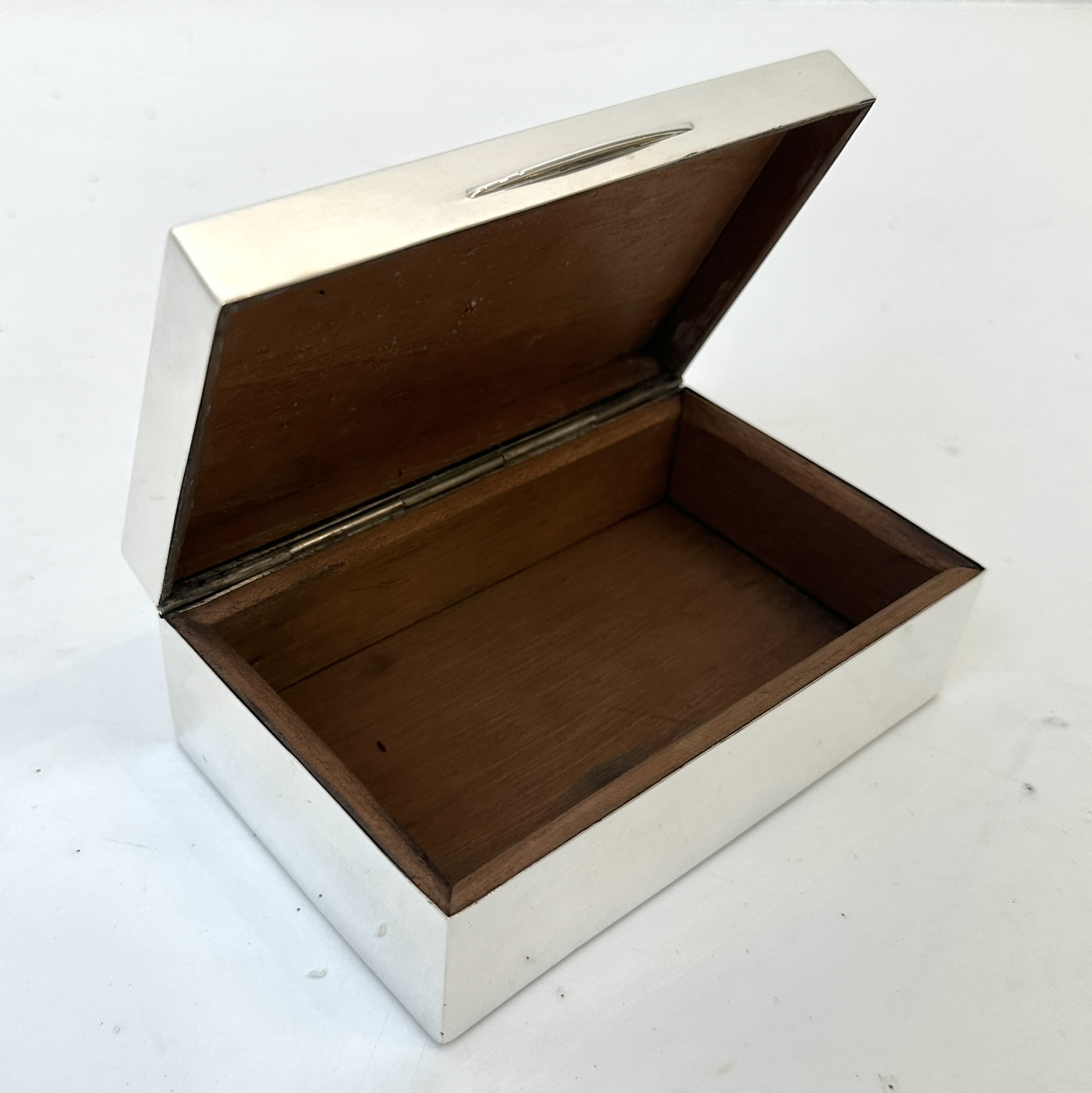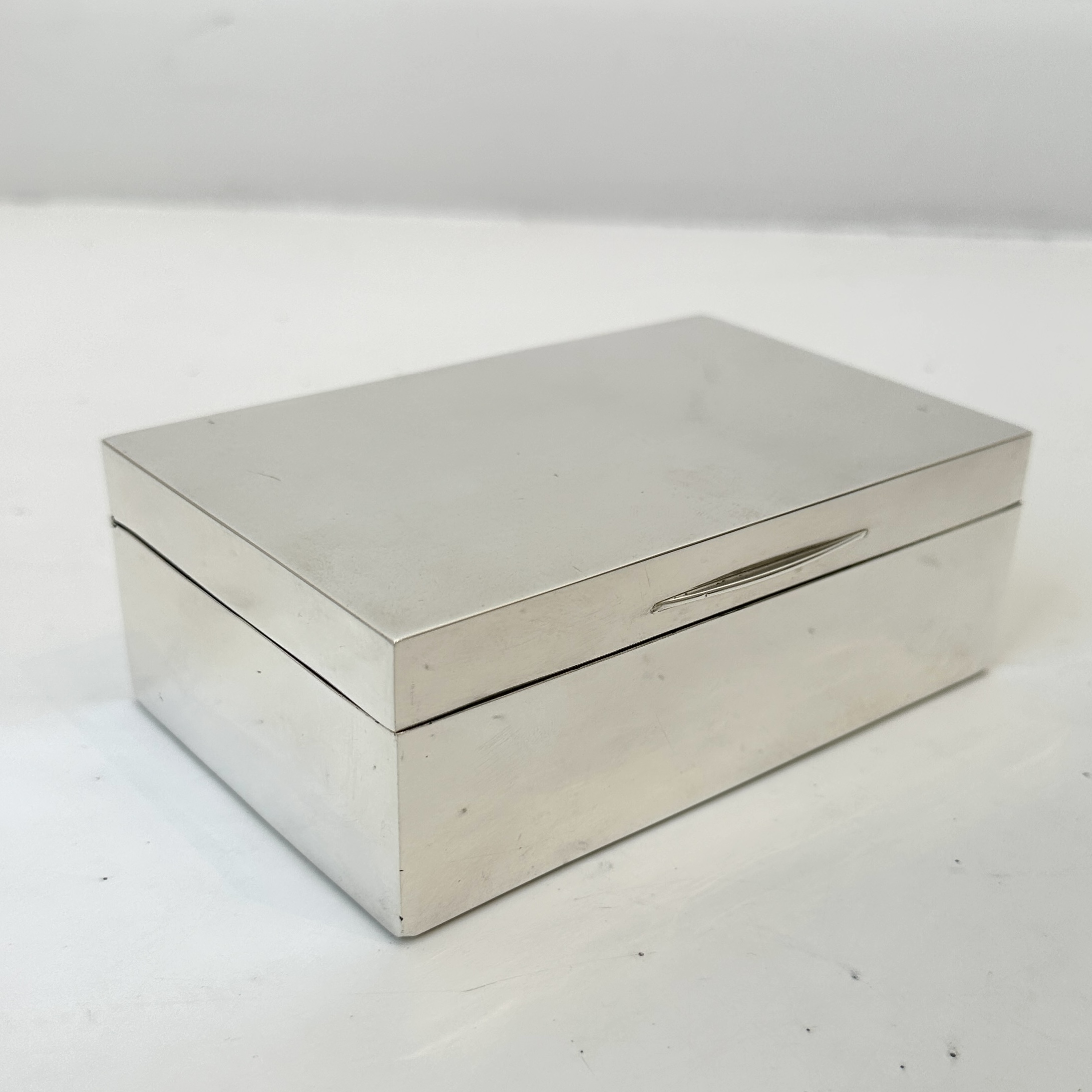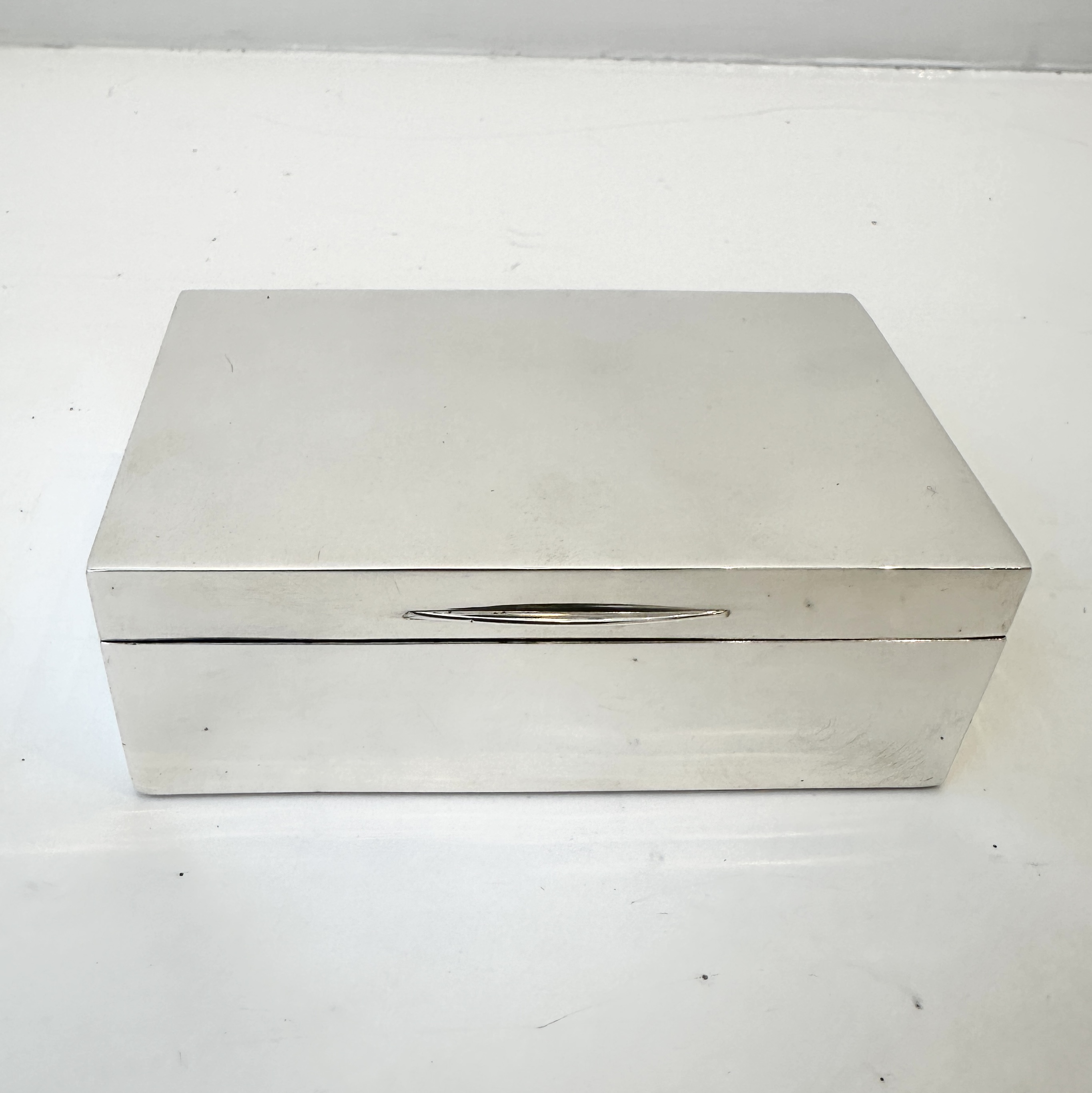 Fine Mappin & Webb Sterling Silver Box. Sterling silver Art Deco period box crafted by Mappin & Webb with cedar wood lined interior. An extremely fine example of an English silver box. marked with maker’s mark period mark on side. England 1928 H:2 W:5.5 D:3.5 inches