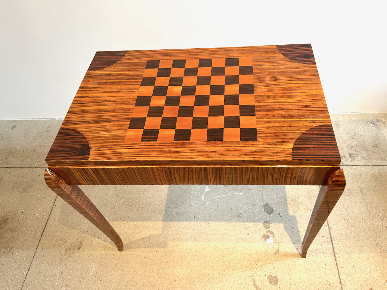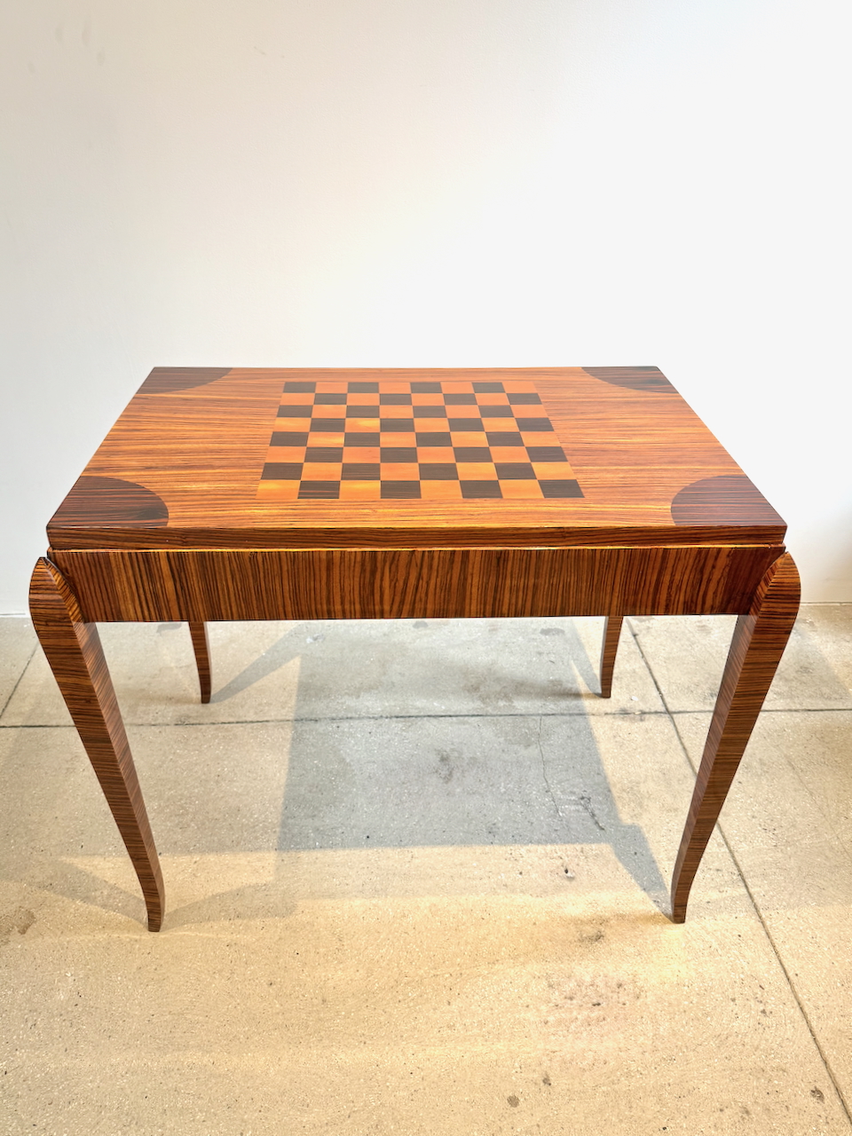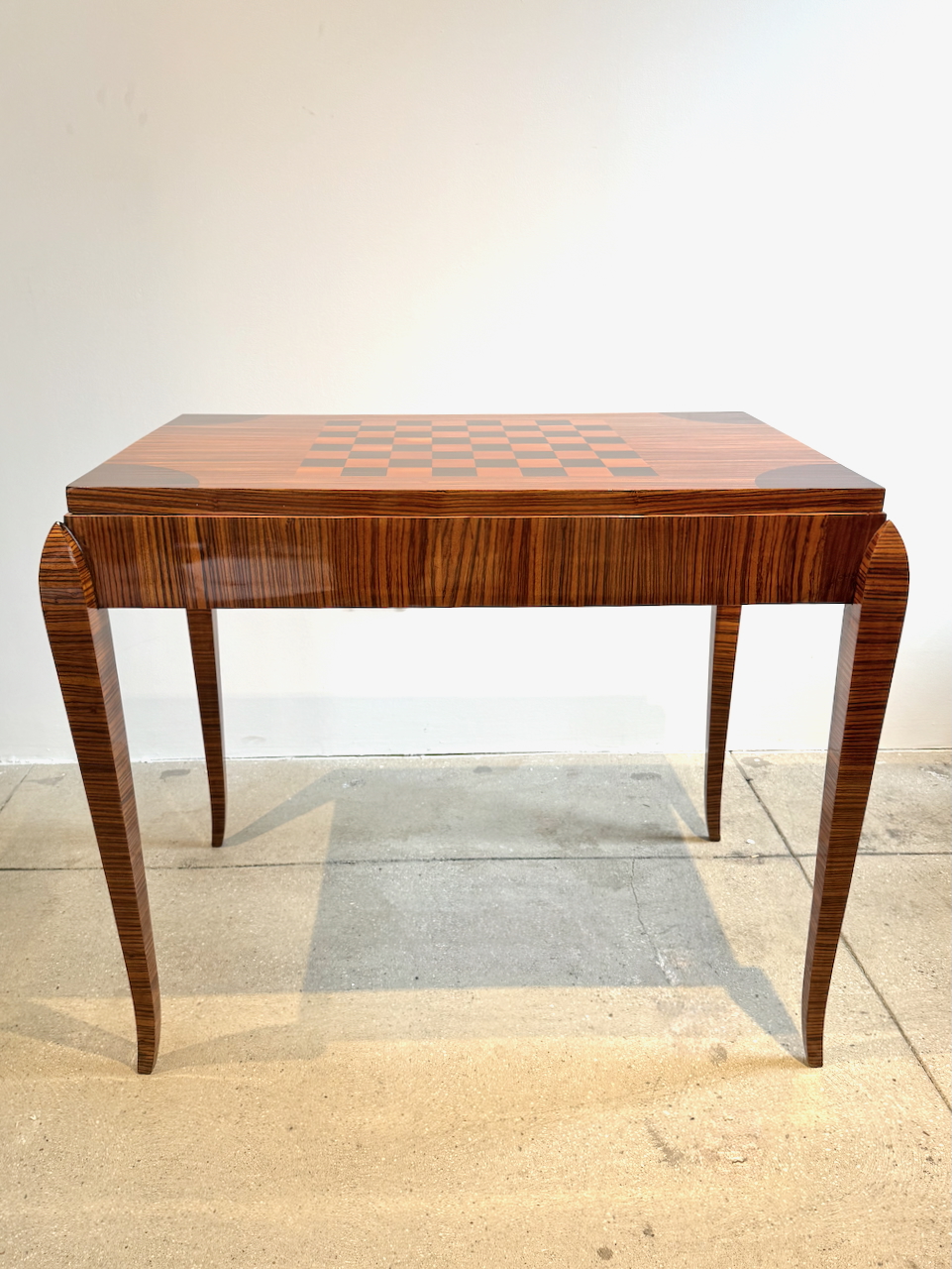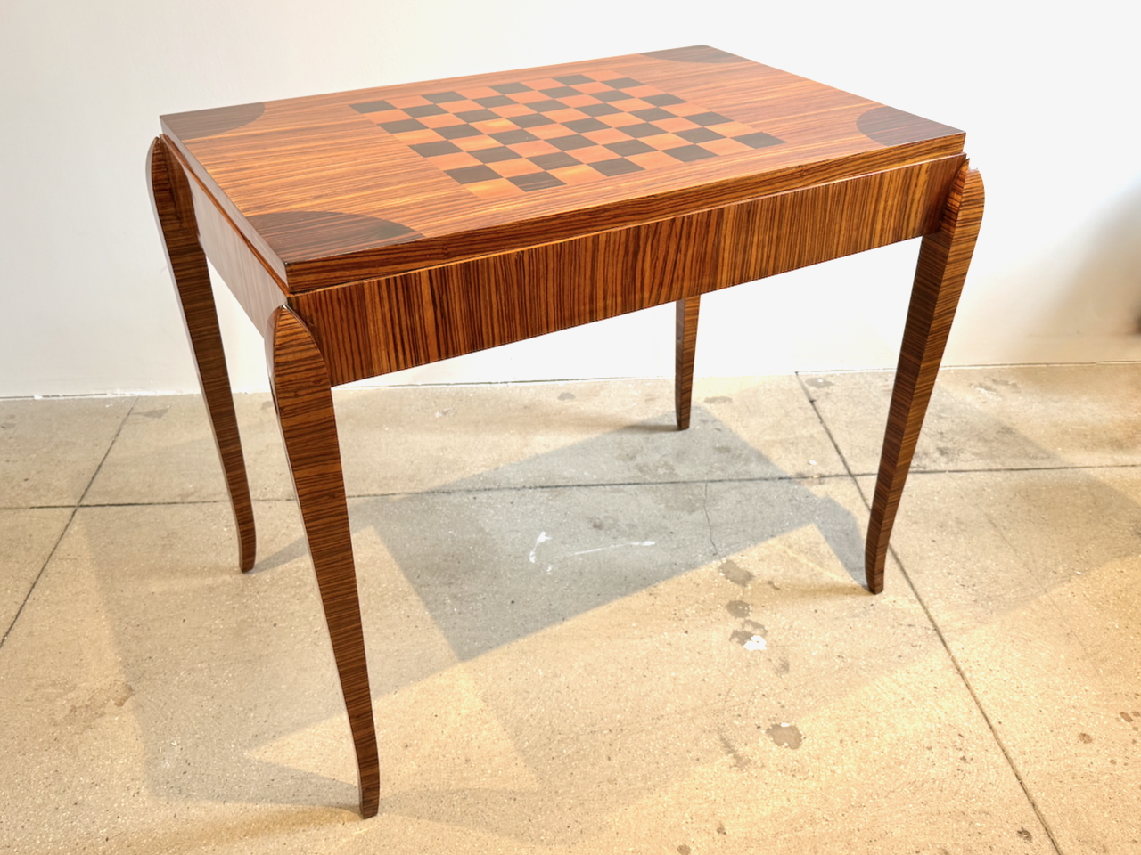Fine Art Deco Game Table with inlaid checkerboard top and backgammon interior compartment.