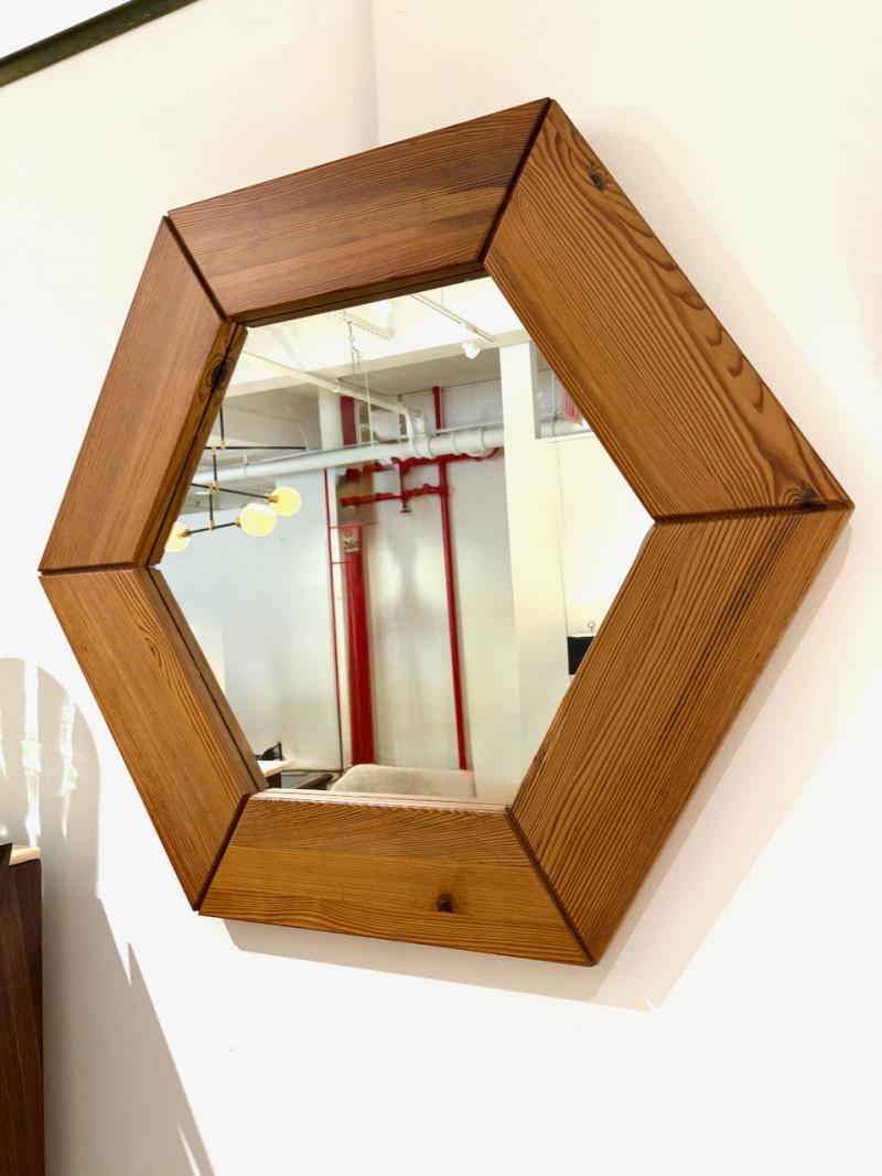A large, six-section solid pine mirror of minimalist Scandinavian design made by Glas Mäster of Markaryd, Sweden, 1960s.
