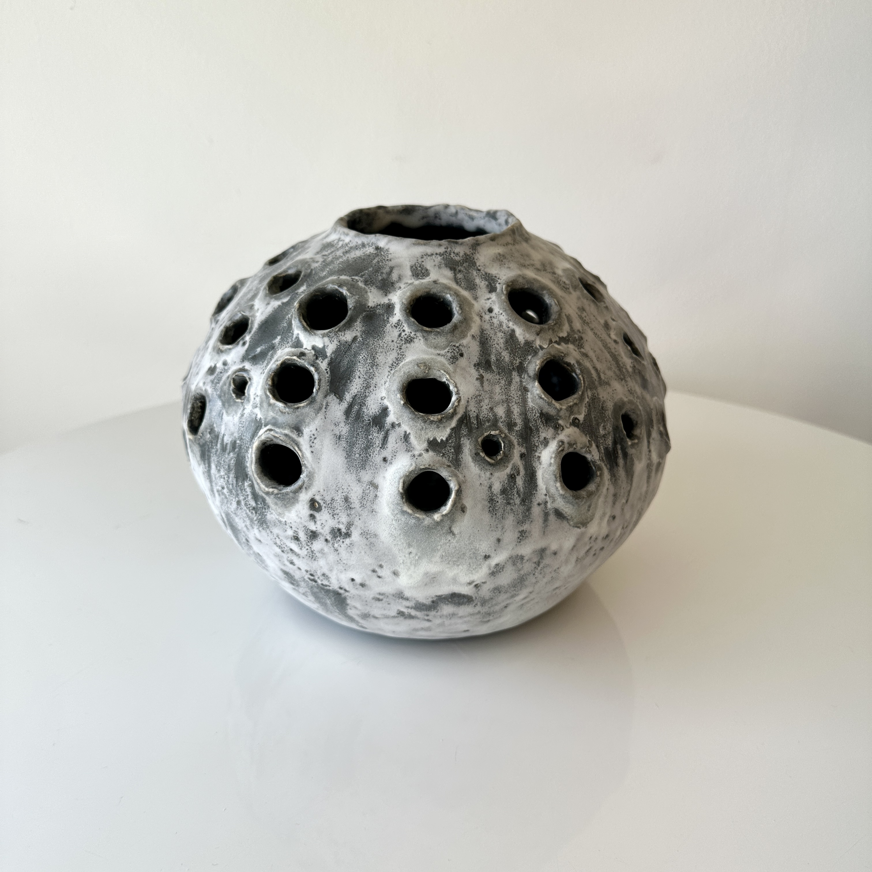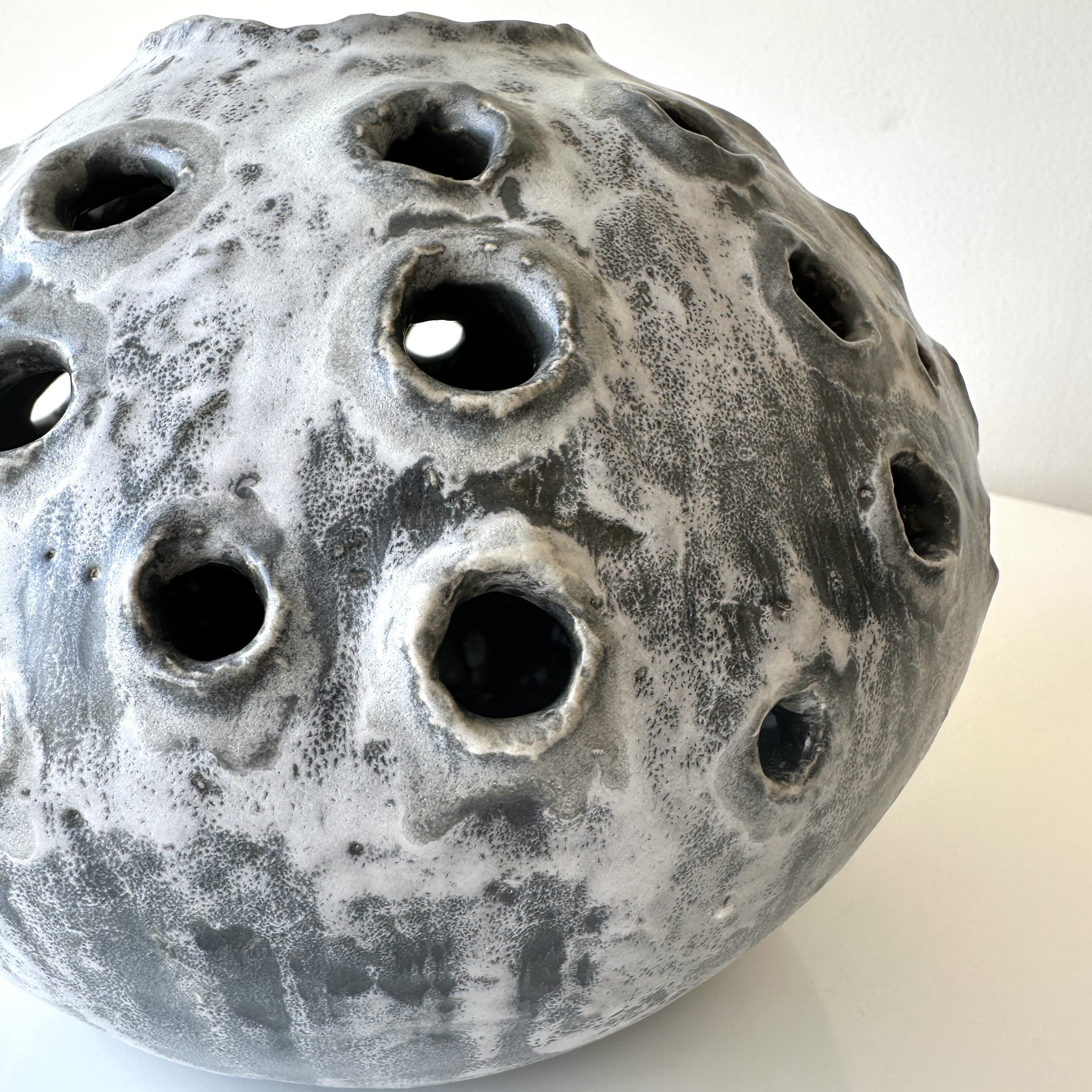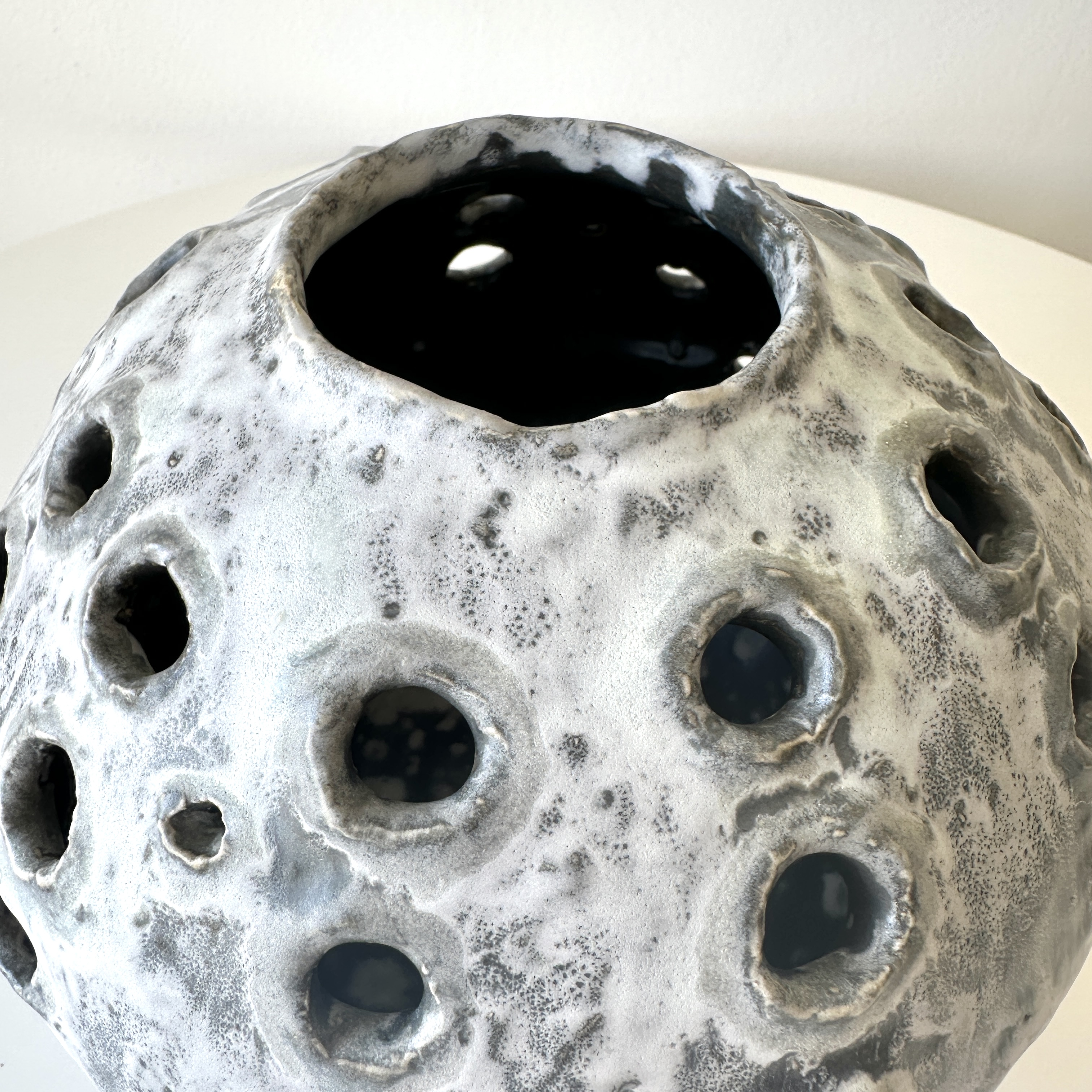 Grey and White Moonvase with Decorative Openings by Aram C.