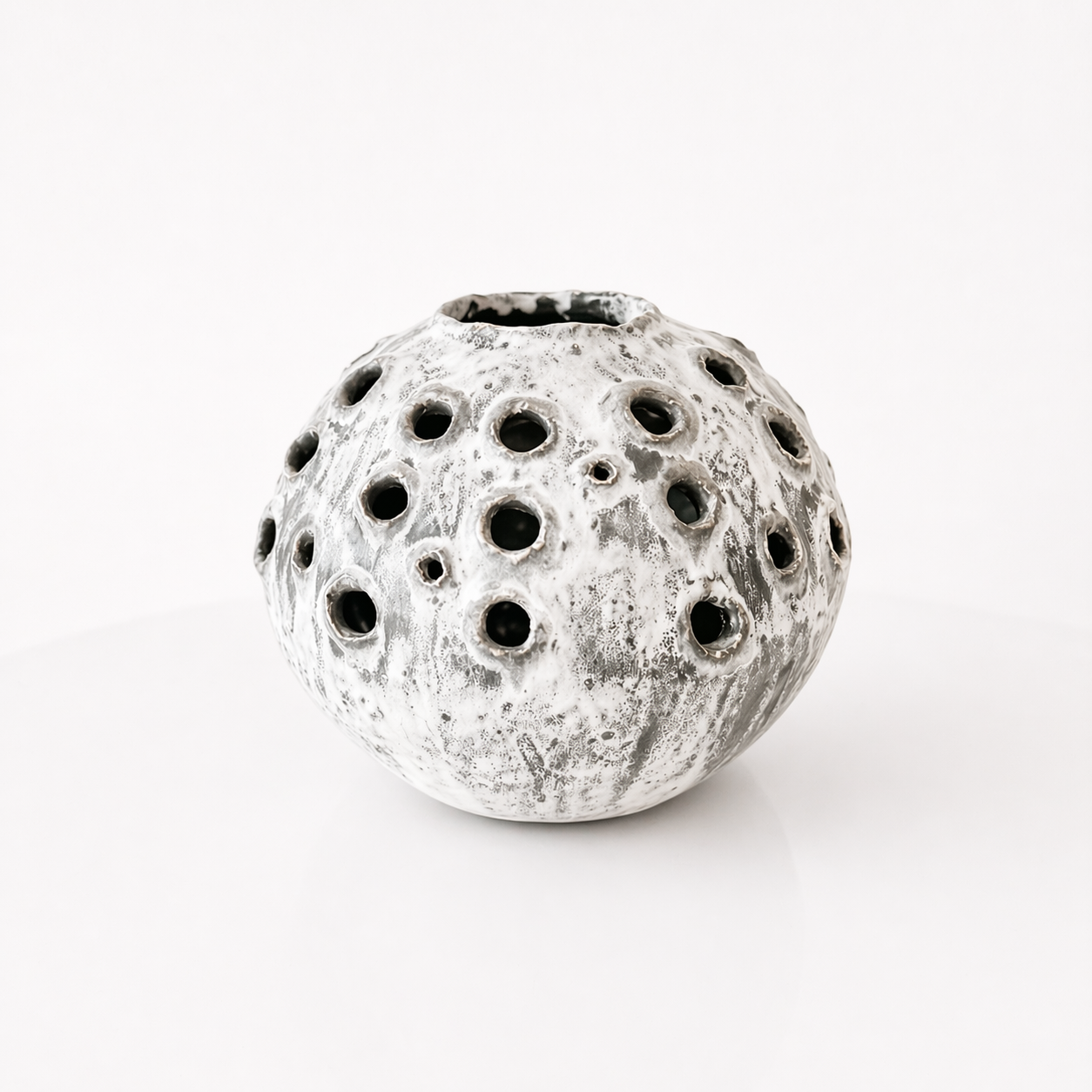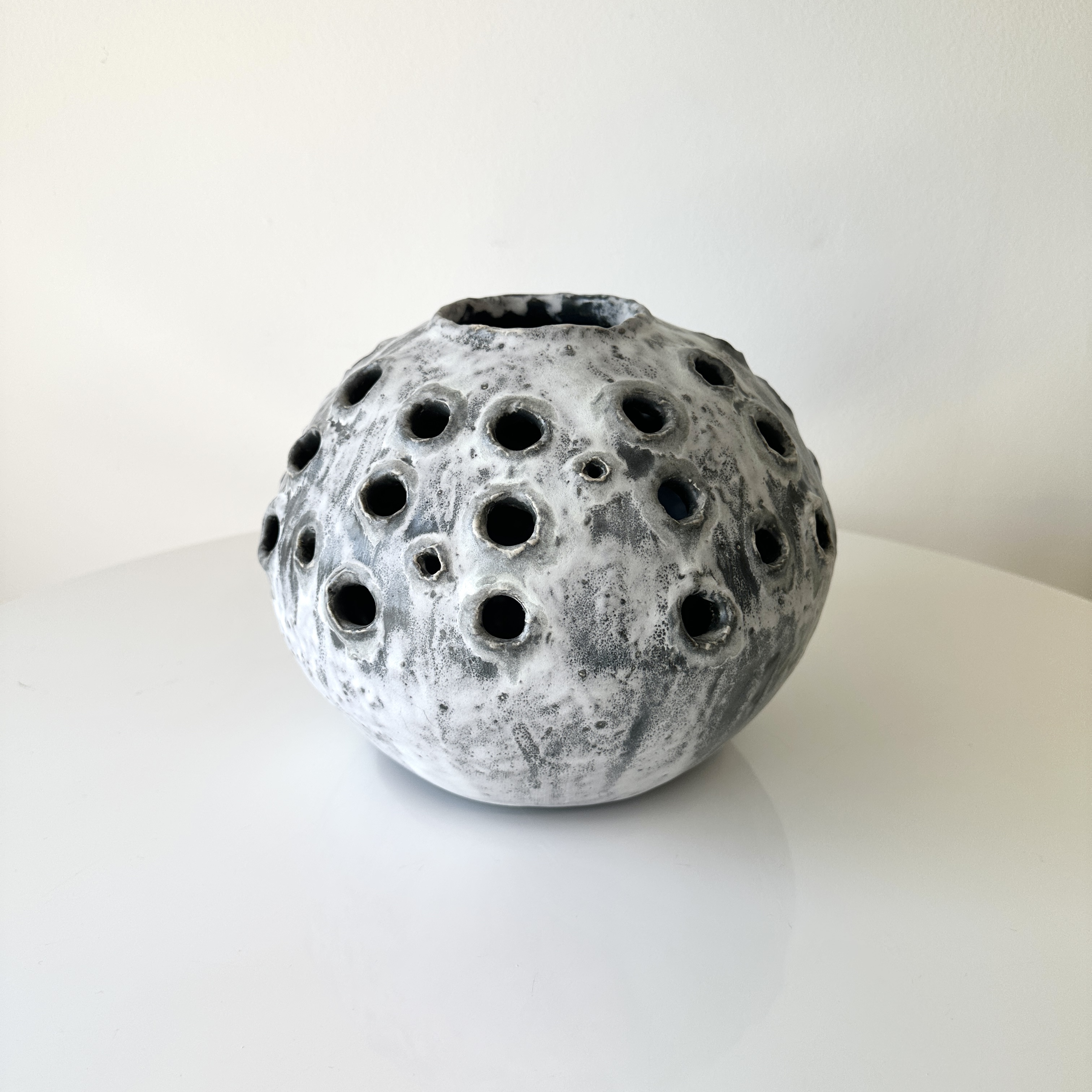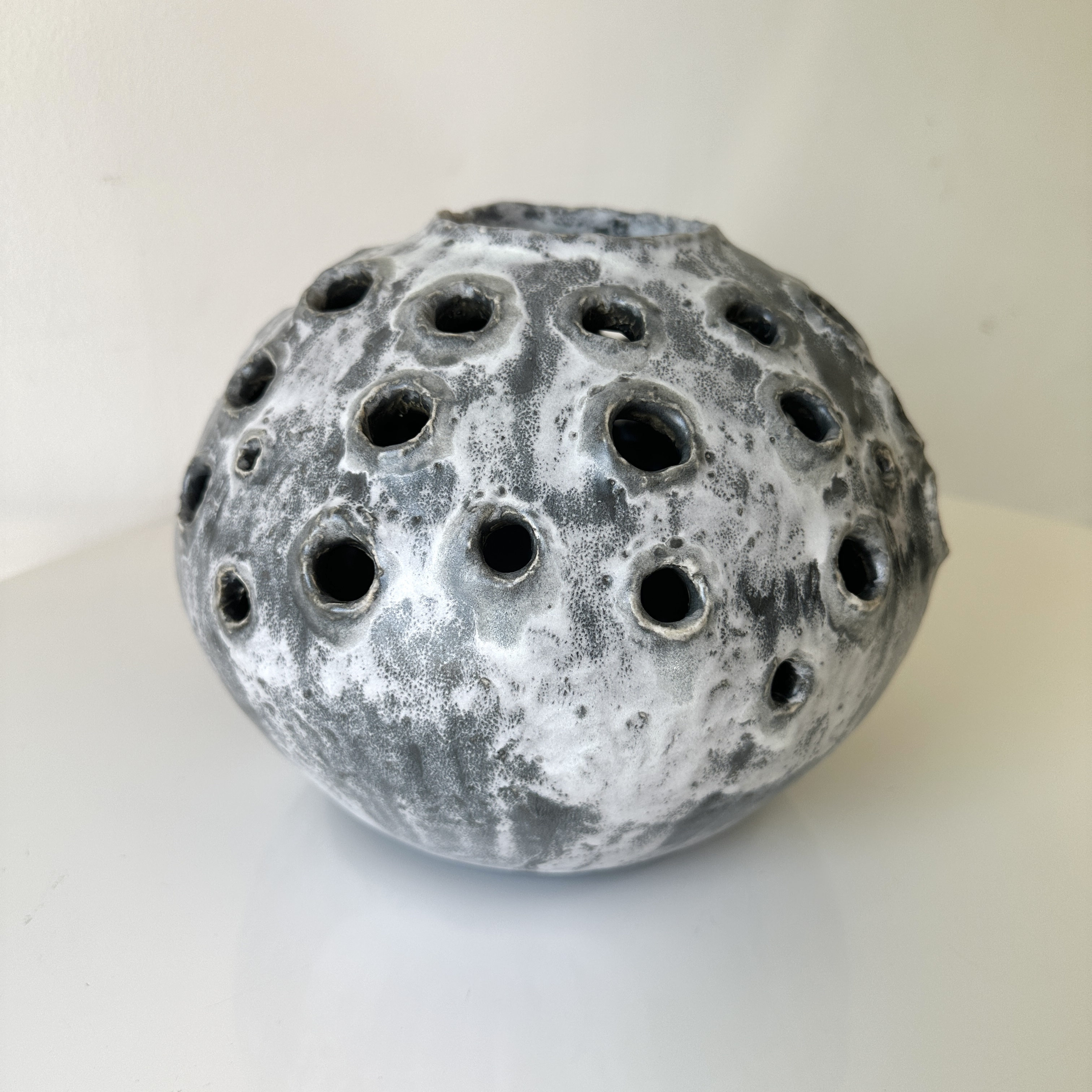 Grey and White Moonvase with Decorative Openings by Aram C.