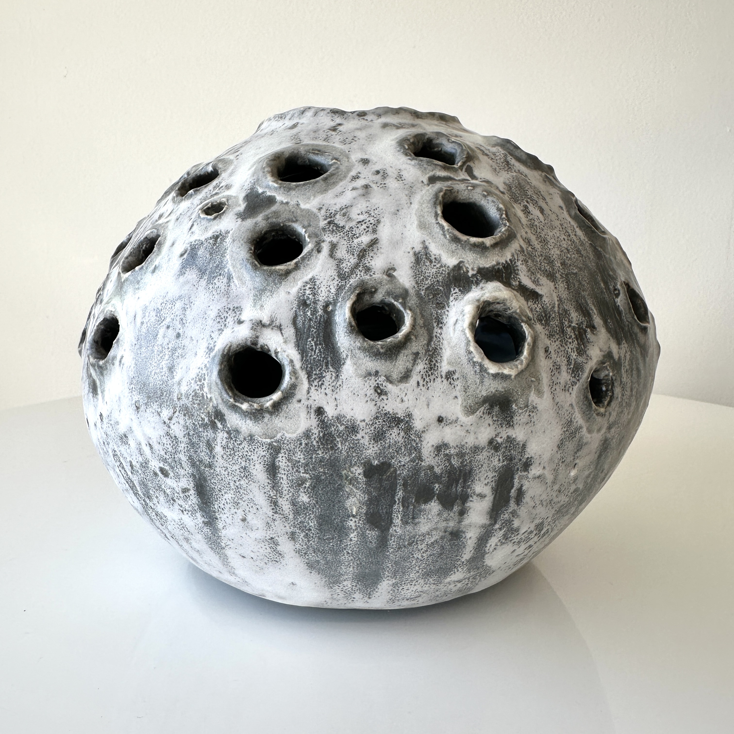 “Grey and White Moonvase with Decorative Openings by Aram C.”