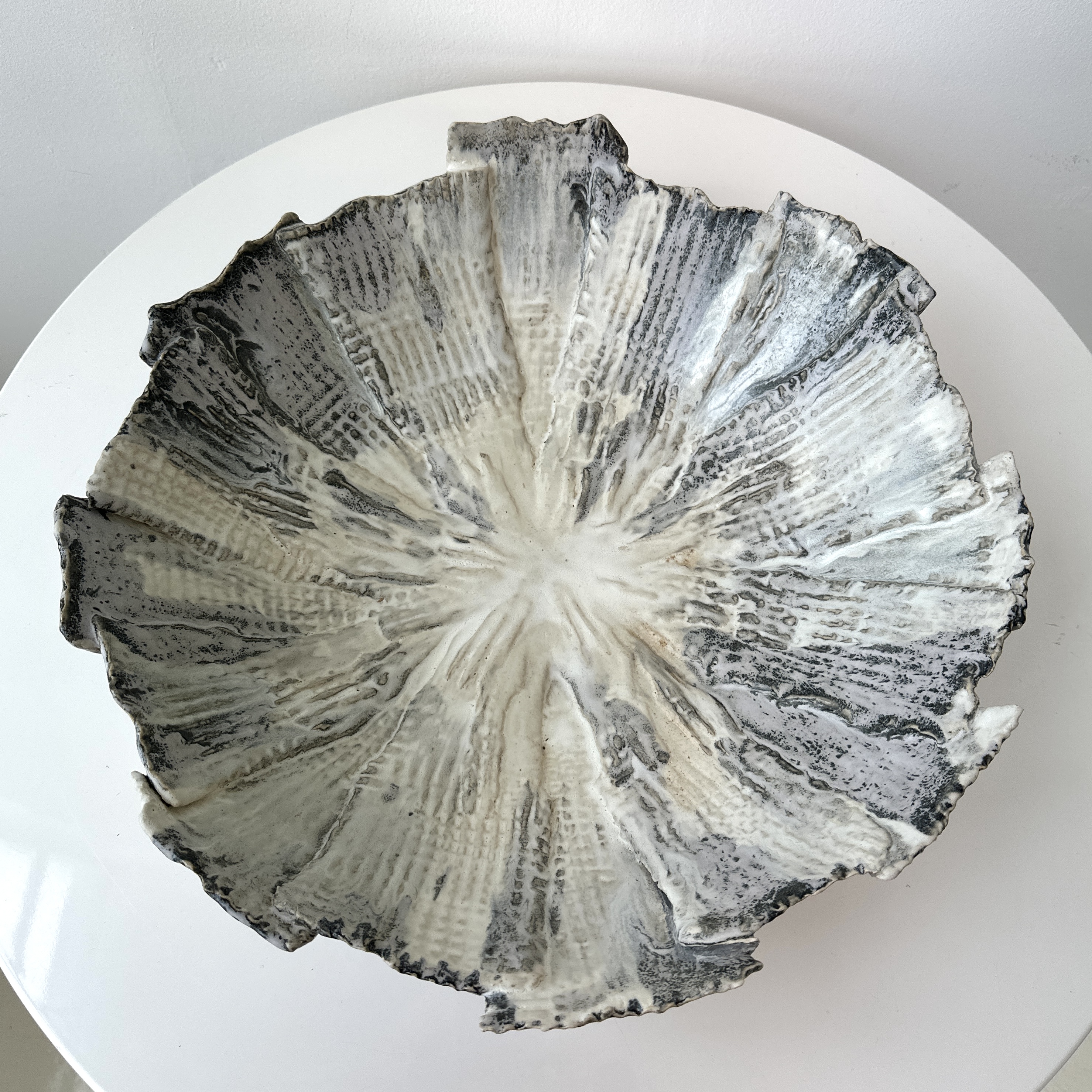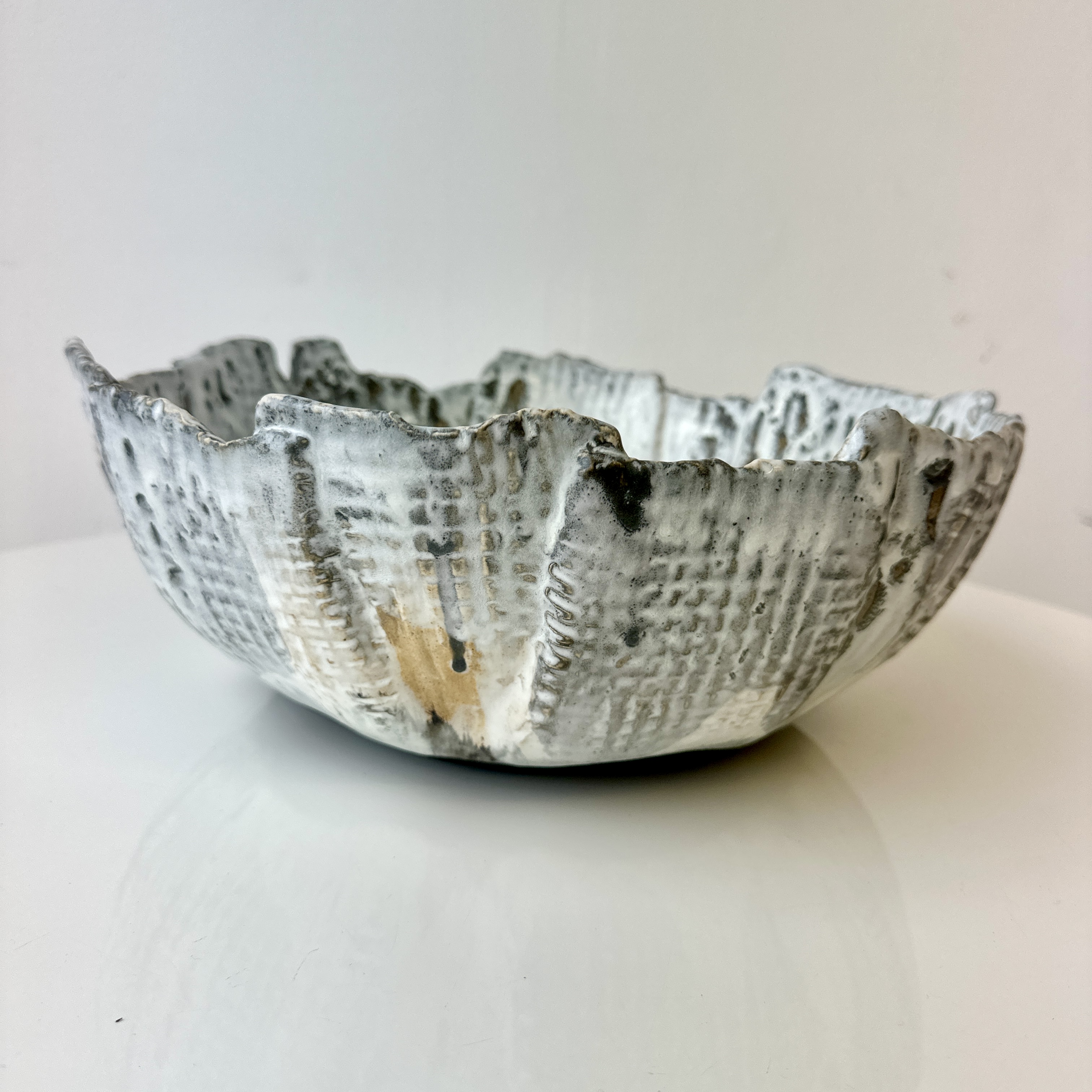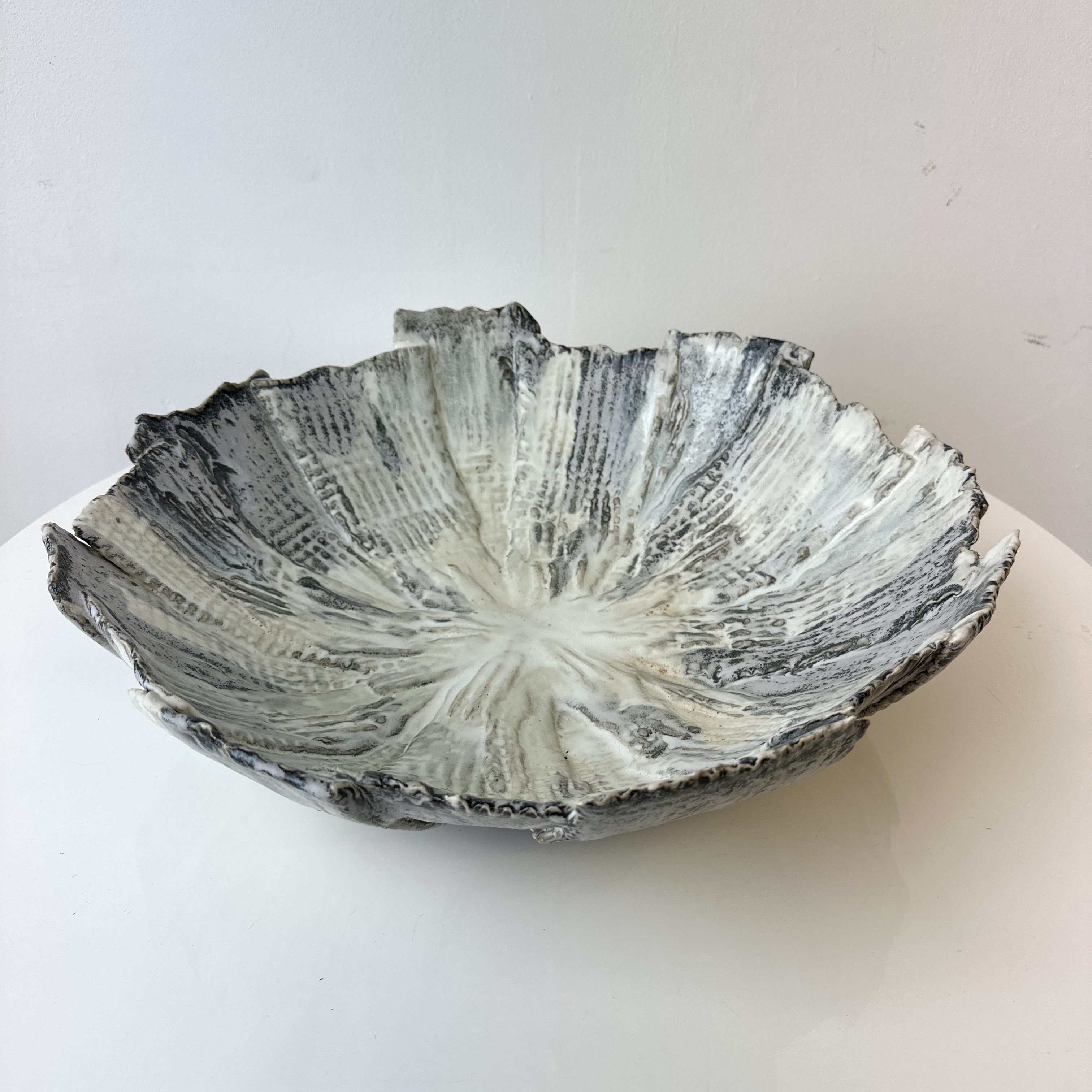 “Grey and White Patterned and Textured Centerpiece Bowl by Aram C.”