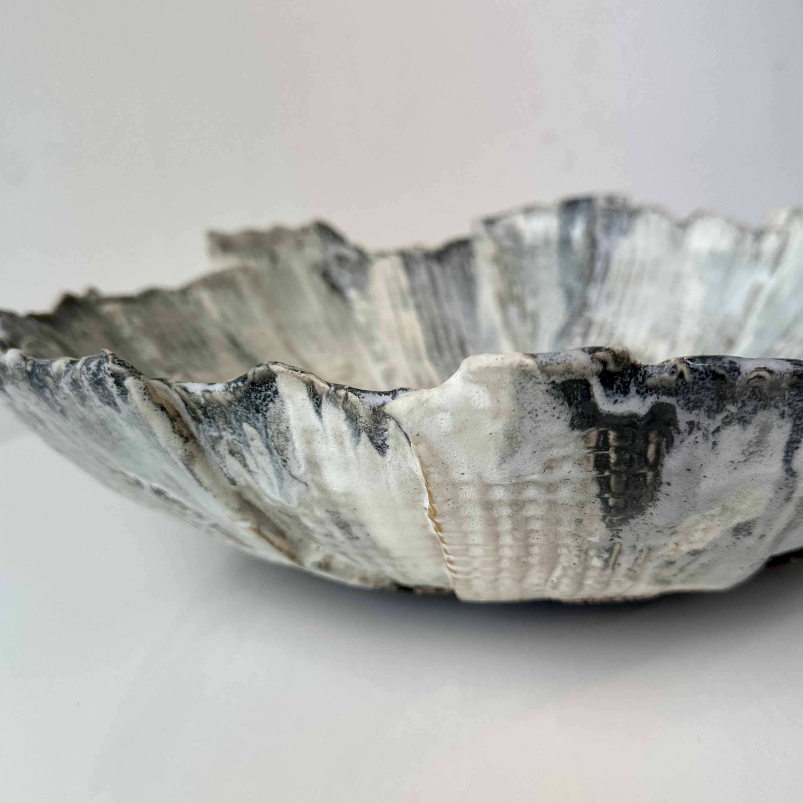 Grey and White Patterned and Textured Centerpiece Bowl .