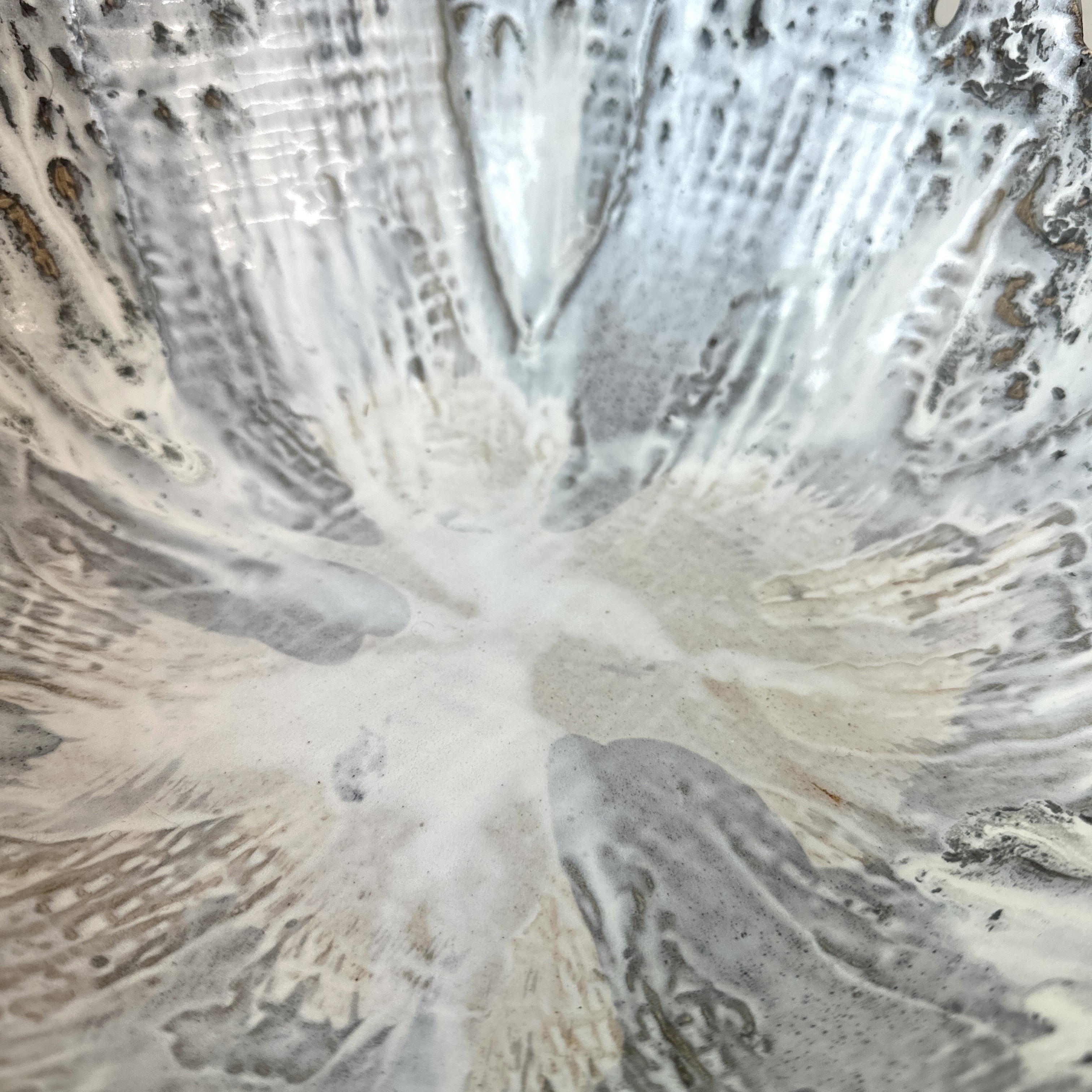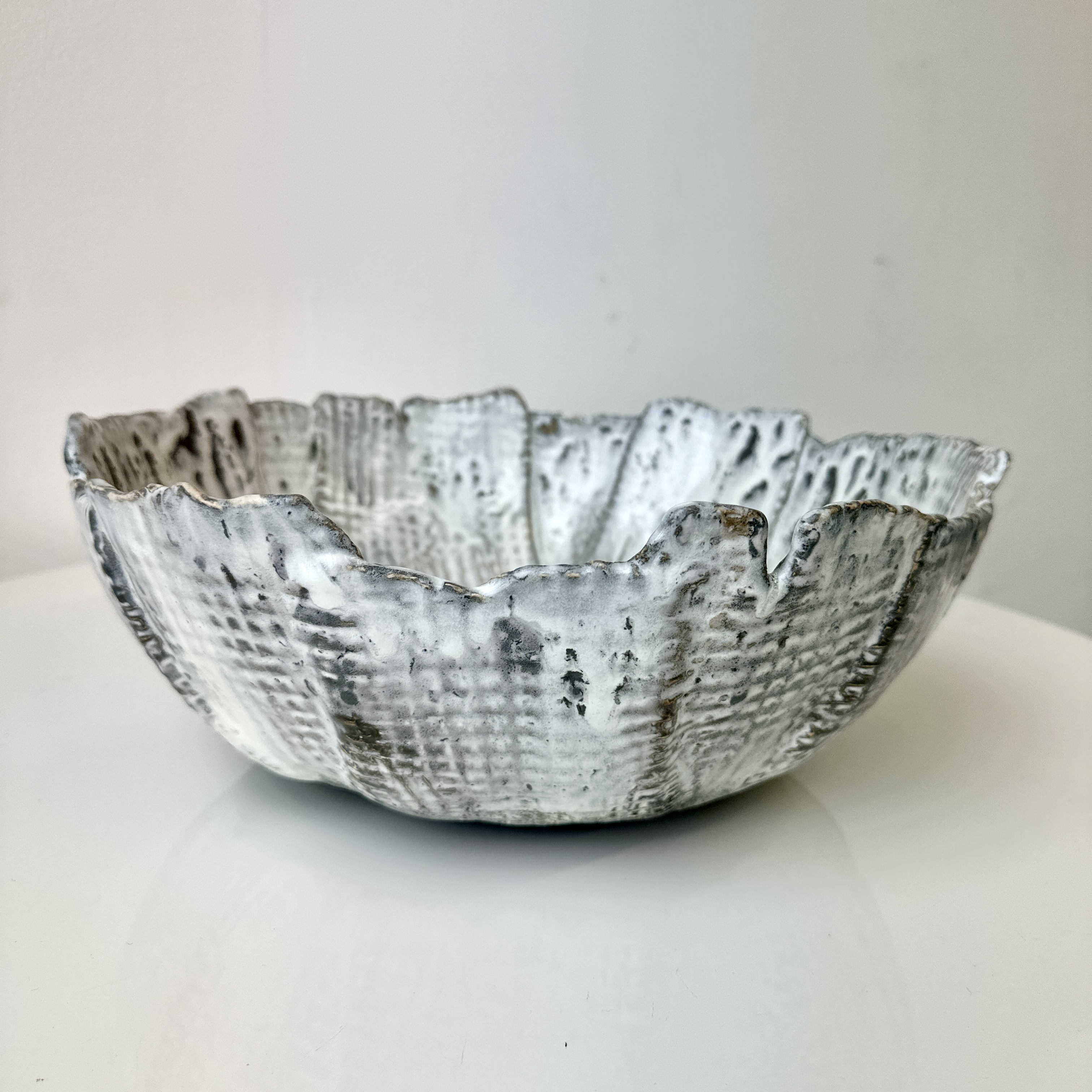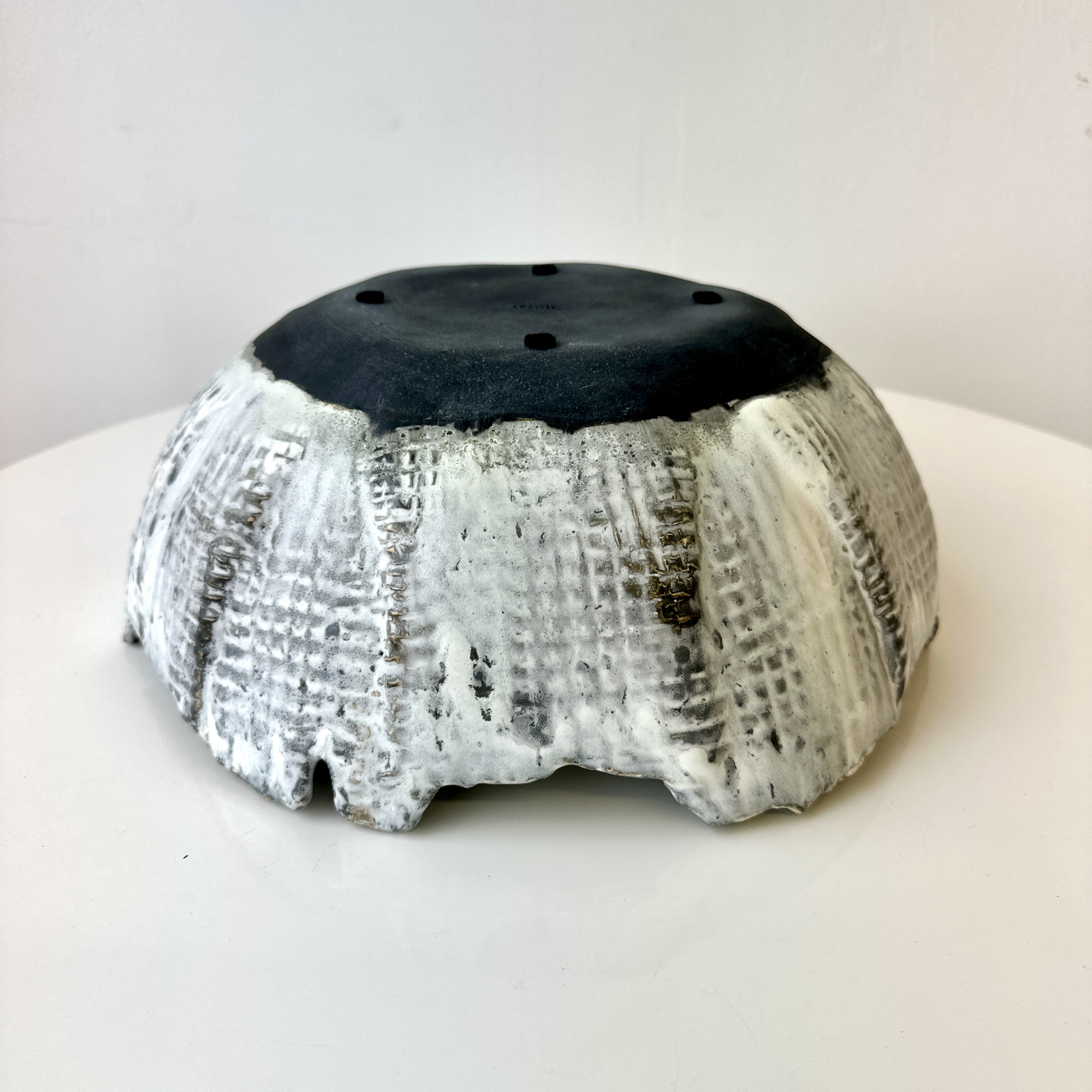 Grey and White patterned and textured bowl by Aram C. Signed underneath.