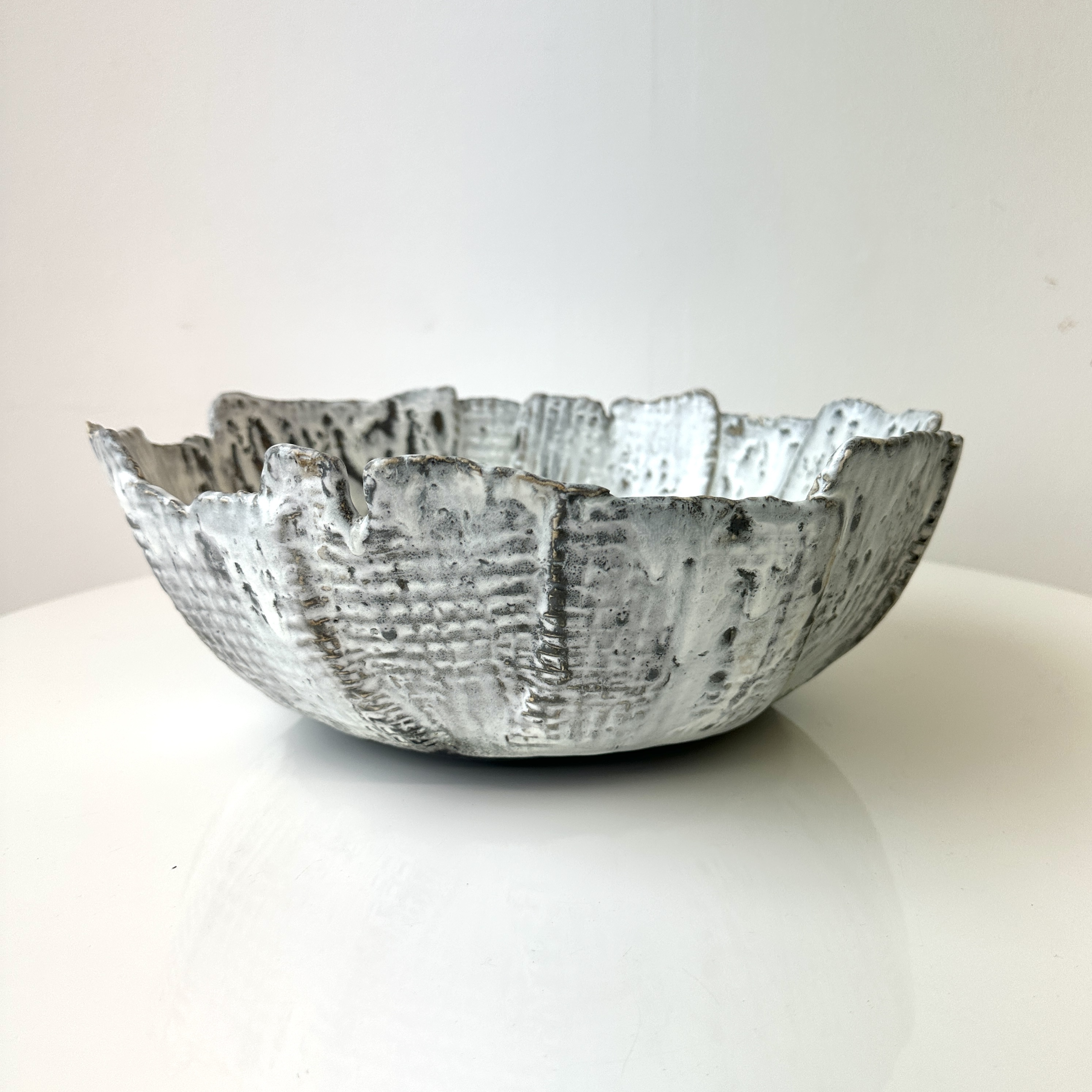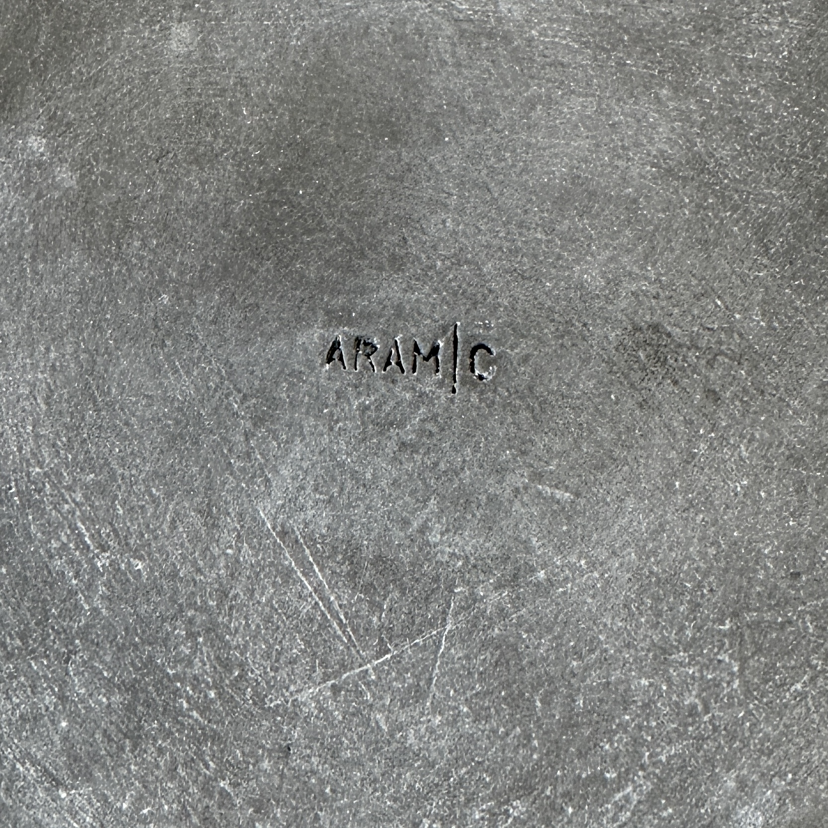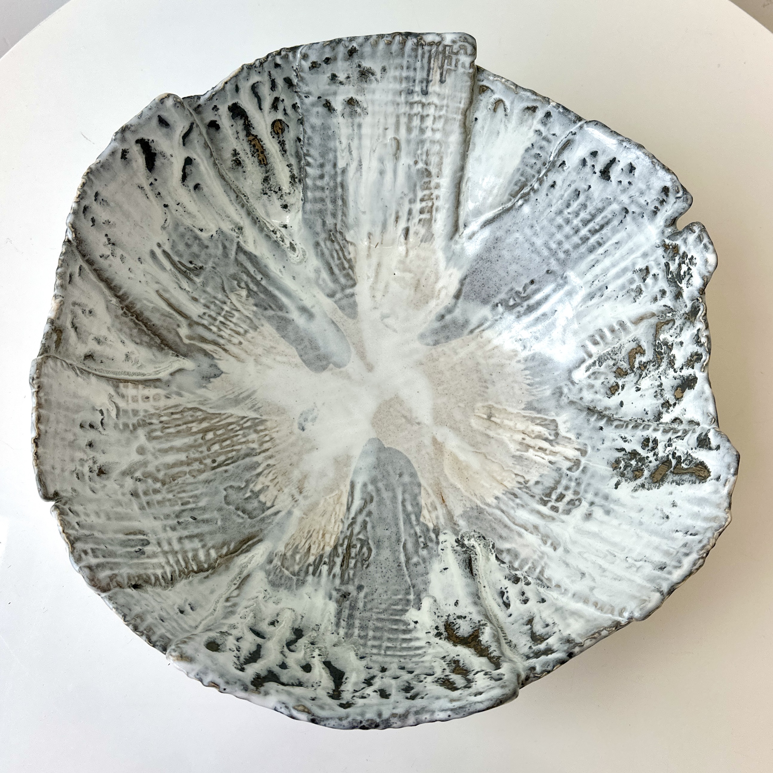 Grey and White patterned and textured bowl by Aram C. Signed underneath.