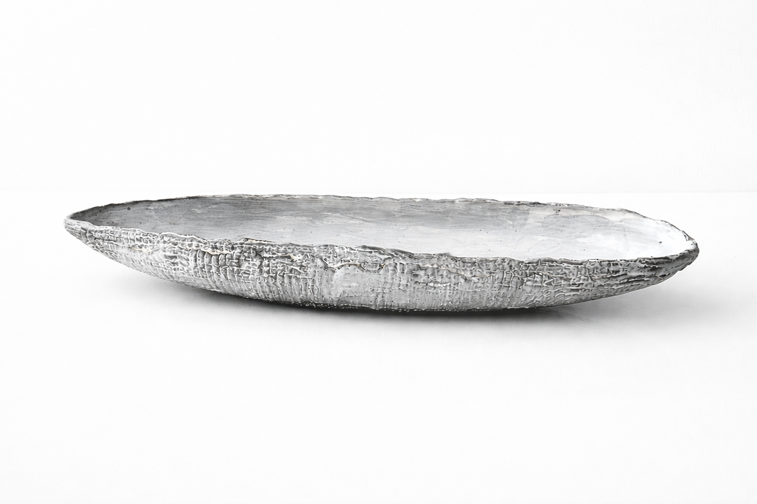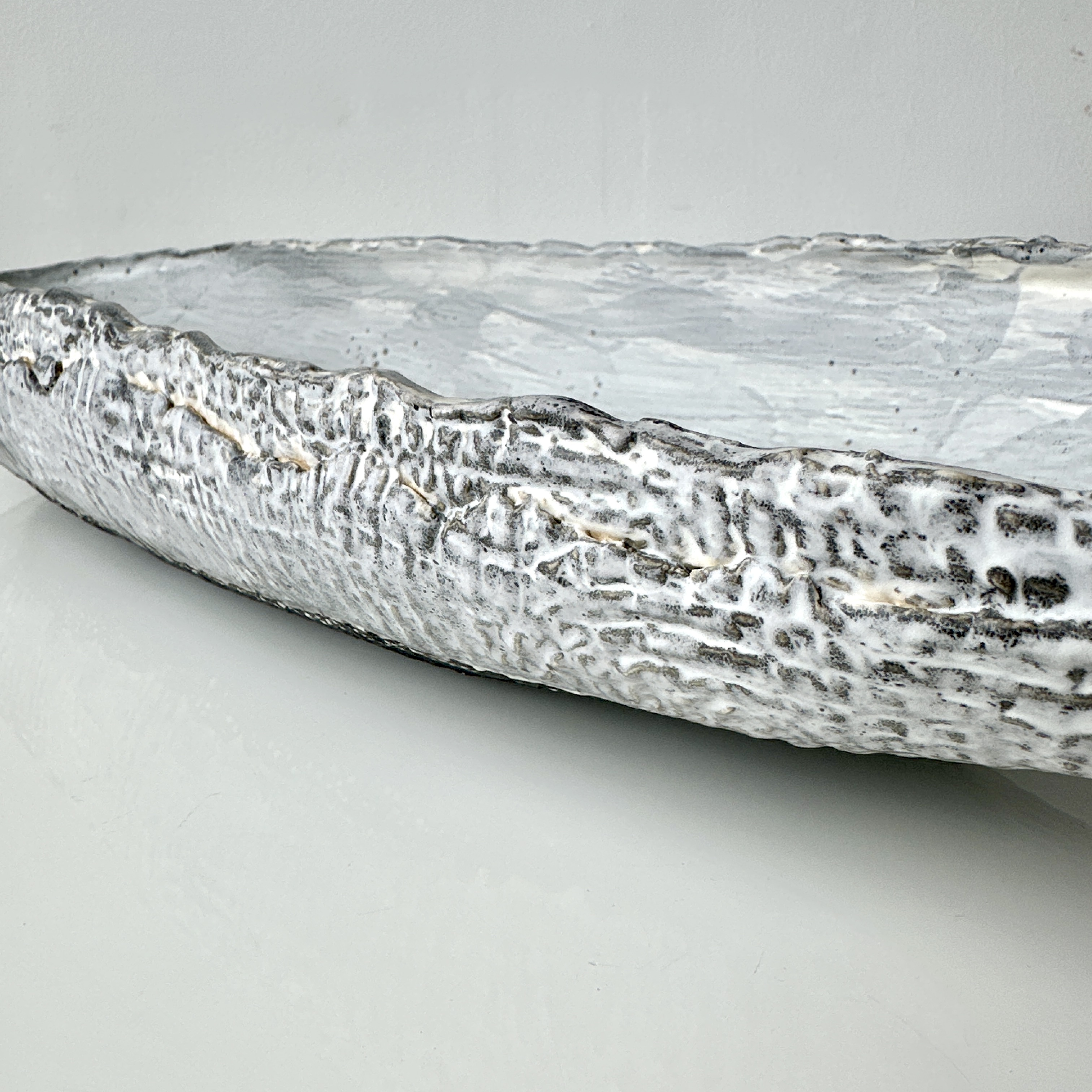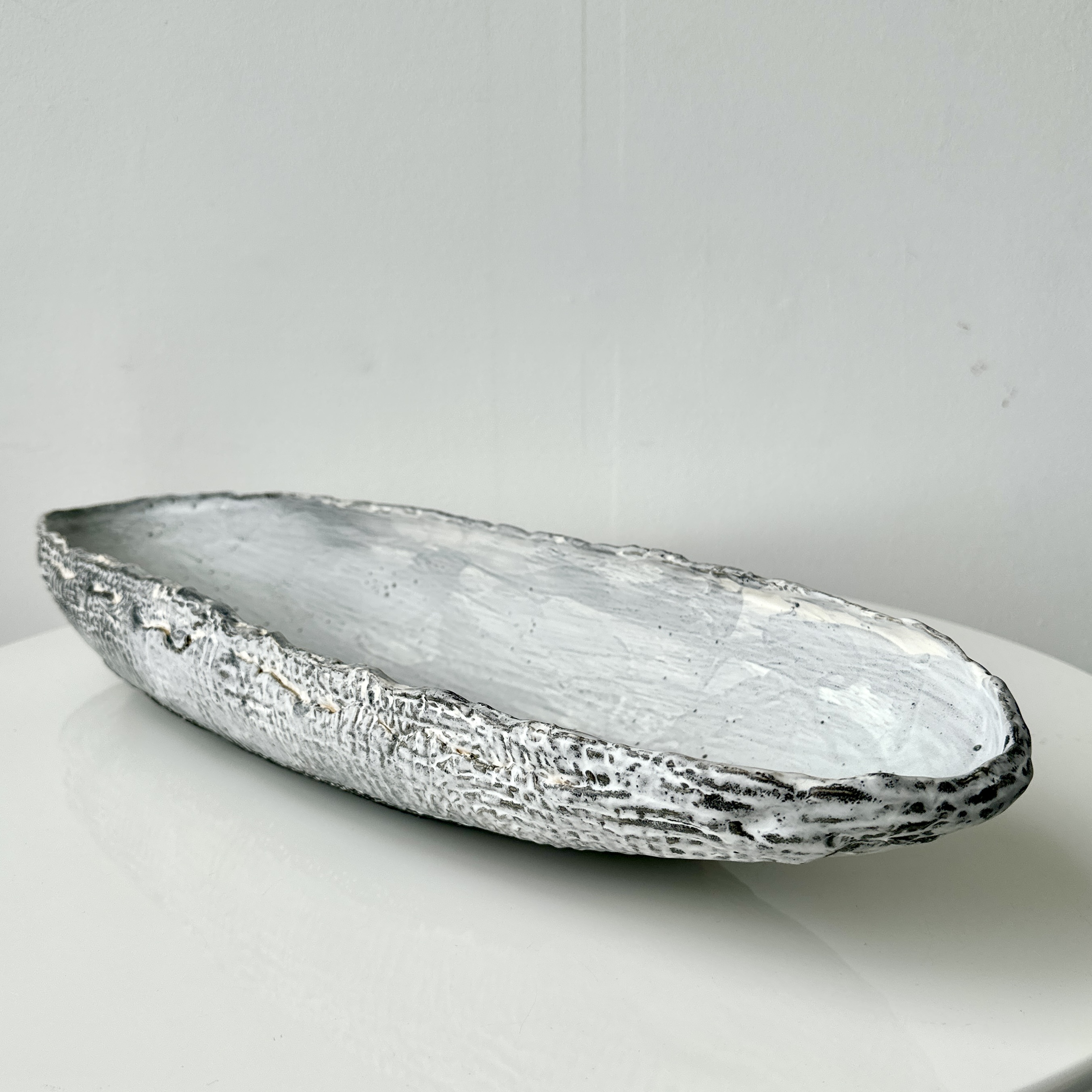 Grey-White Patterned and Textured Oblong Bowl by Aram C.