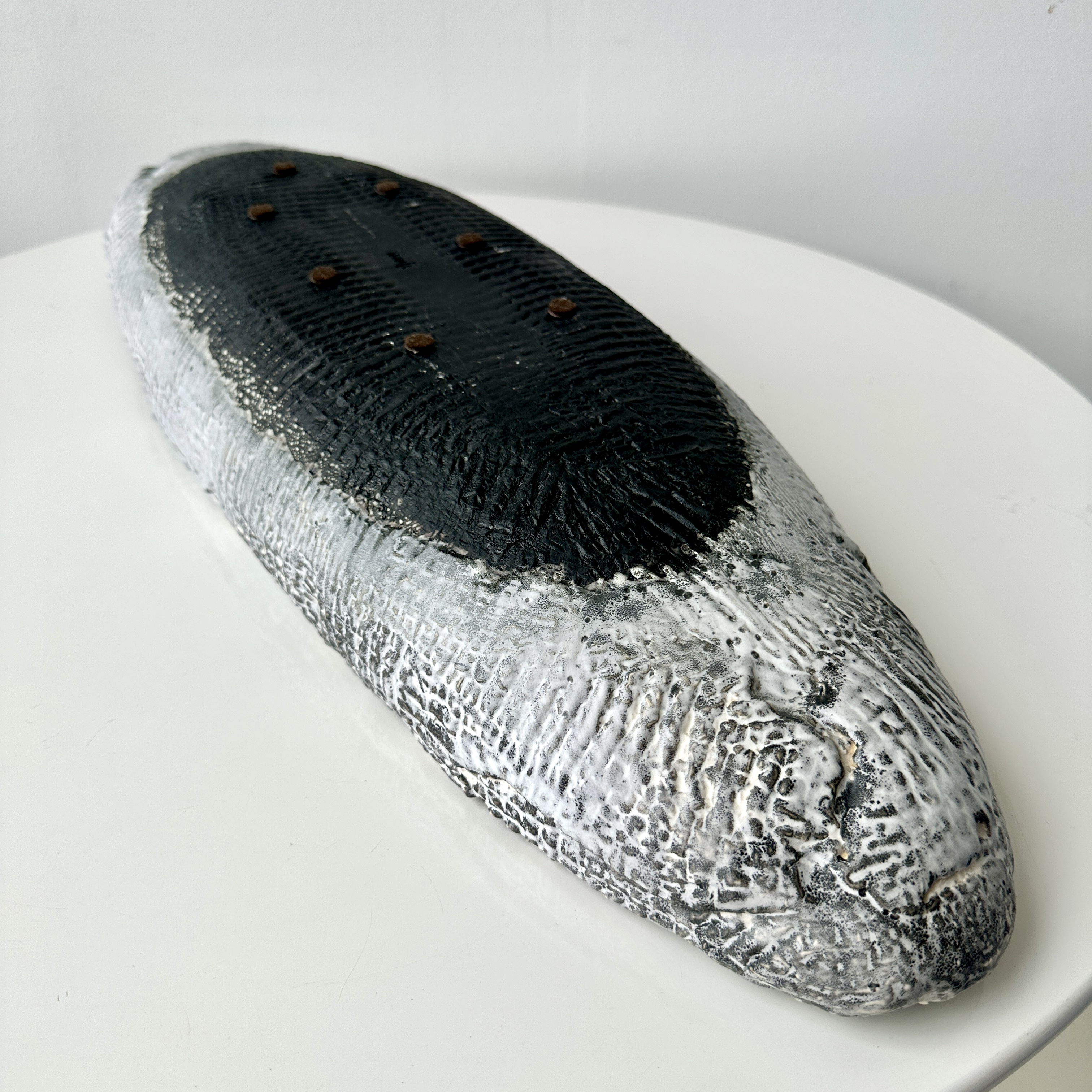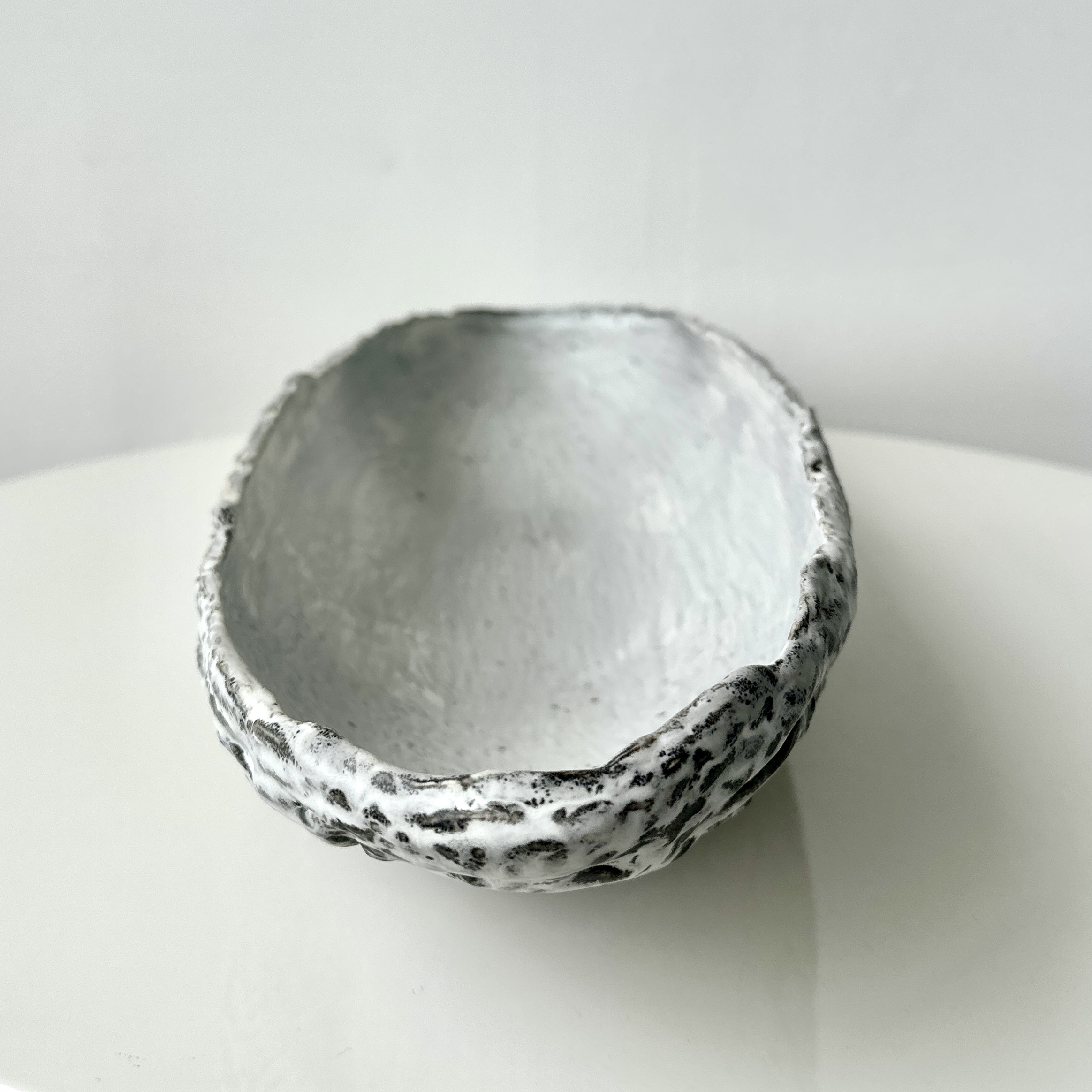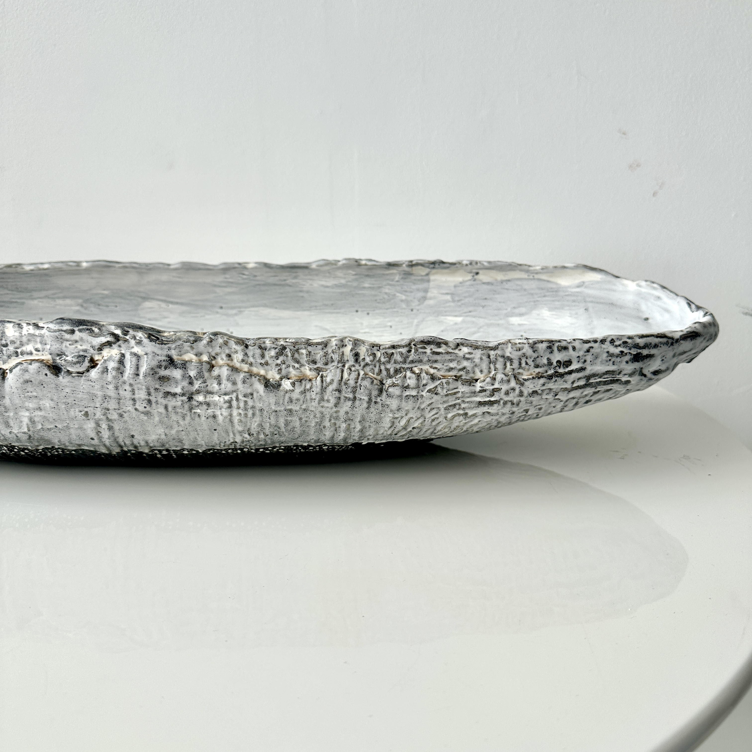 Grey-White Patterned and Textured Oblong Bowl by Aram C.
