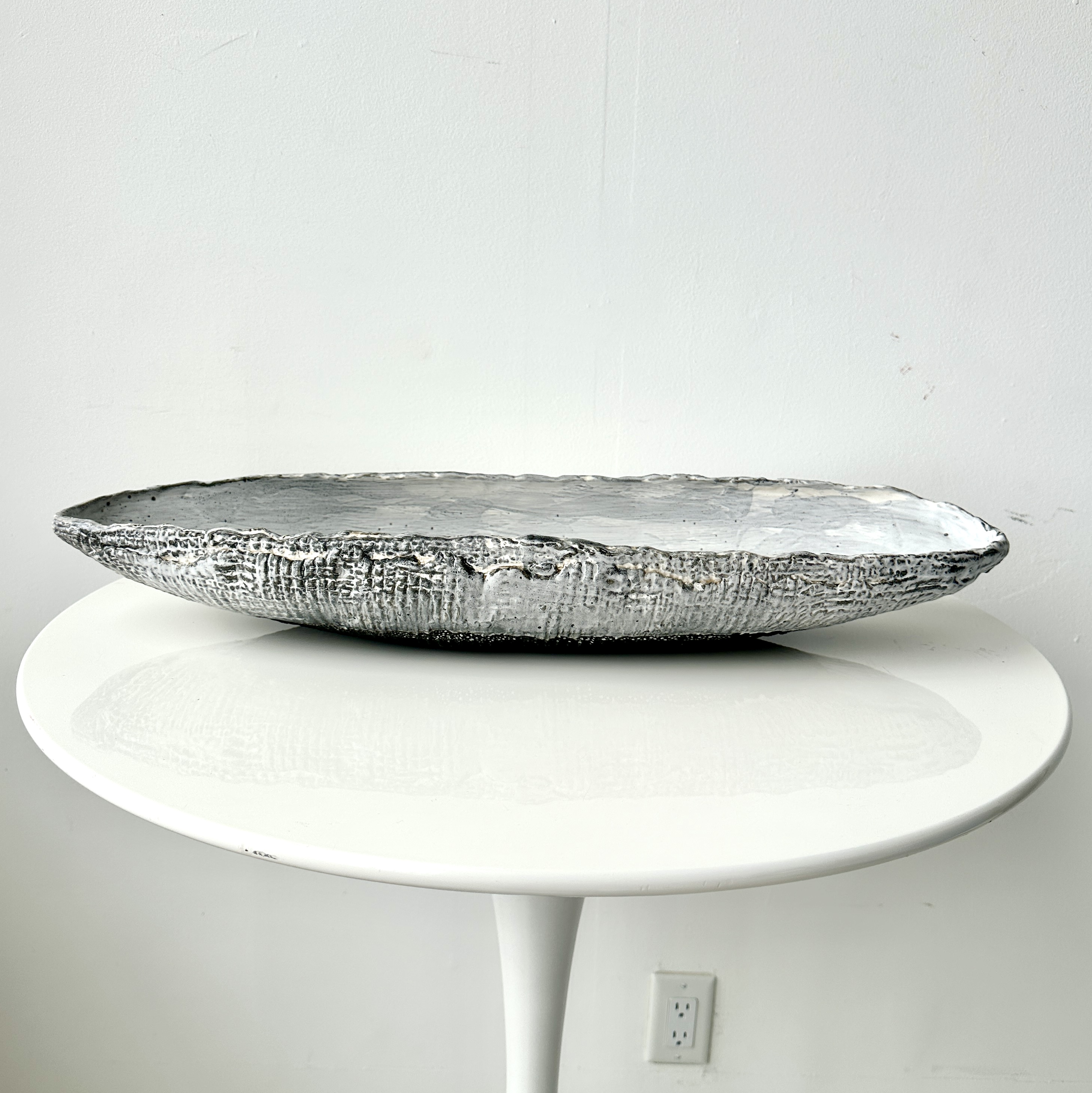 Pair of Ceramic Wave Platters in Platinum. Made By Aram C