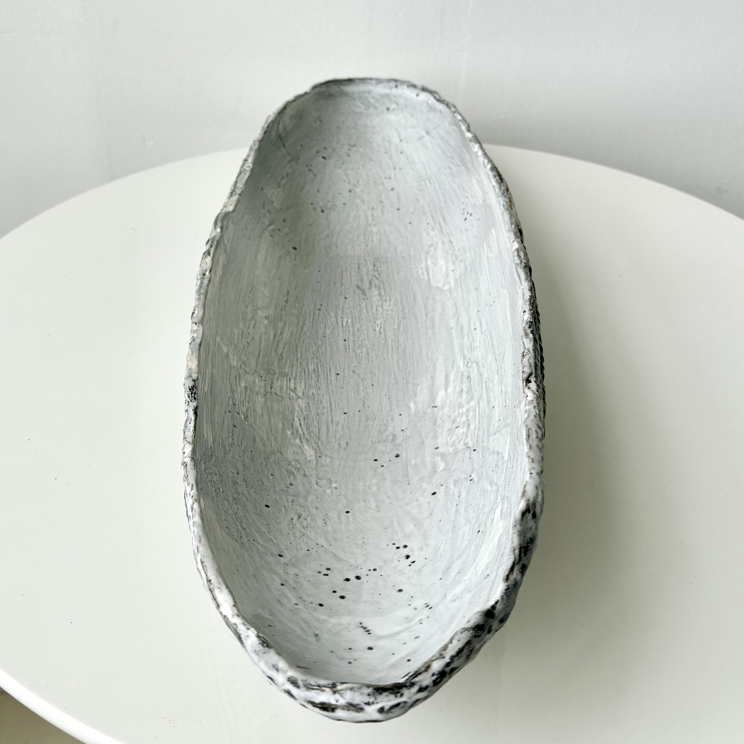“Grey-White Patterned and Textured Oblong Bowl by Aram C.”
