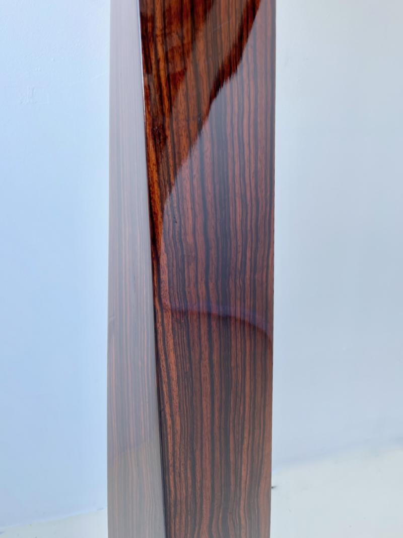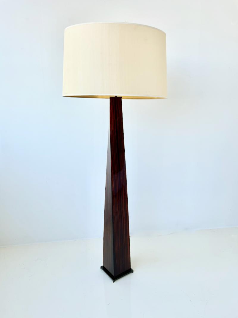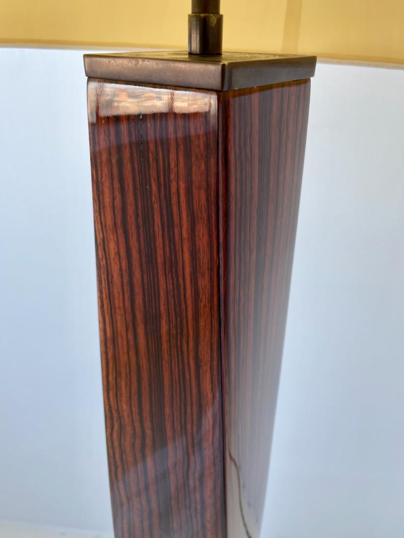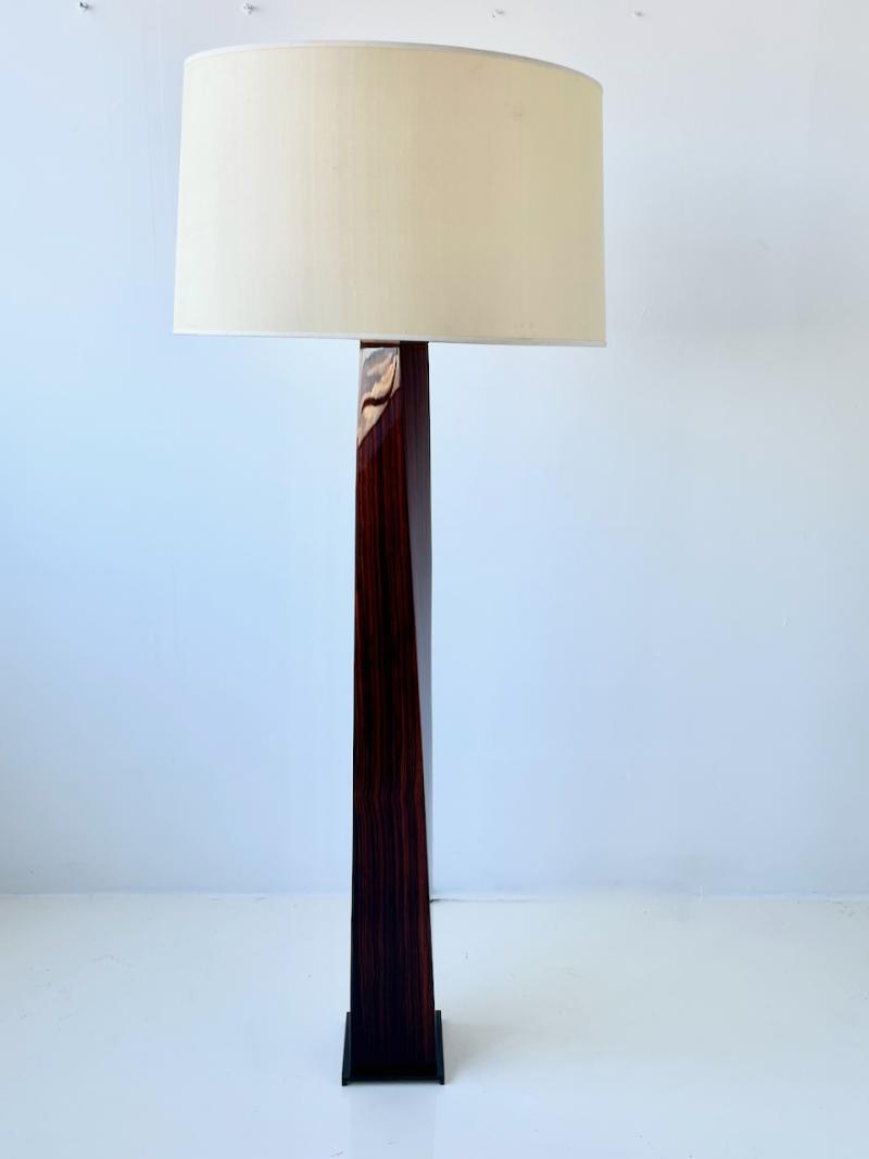 J.M.F. Floor Lamp with twisting shaft in a polished macassar ebony wood with solid bronze base and hardware by Karl Springer, American 1980's. Finely crafted lamp has been professionally polished and lacquered, and newly rewired.