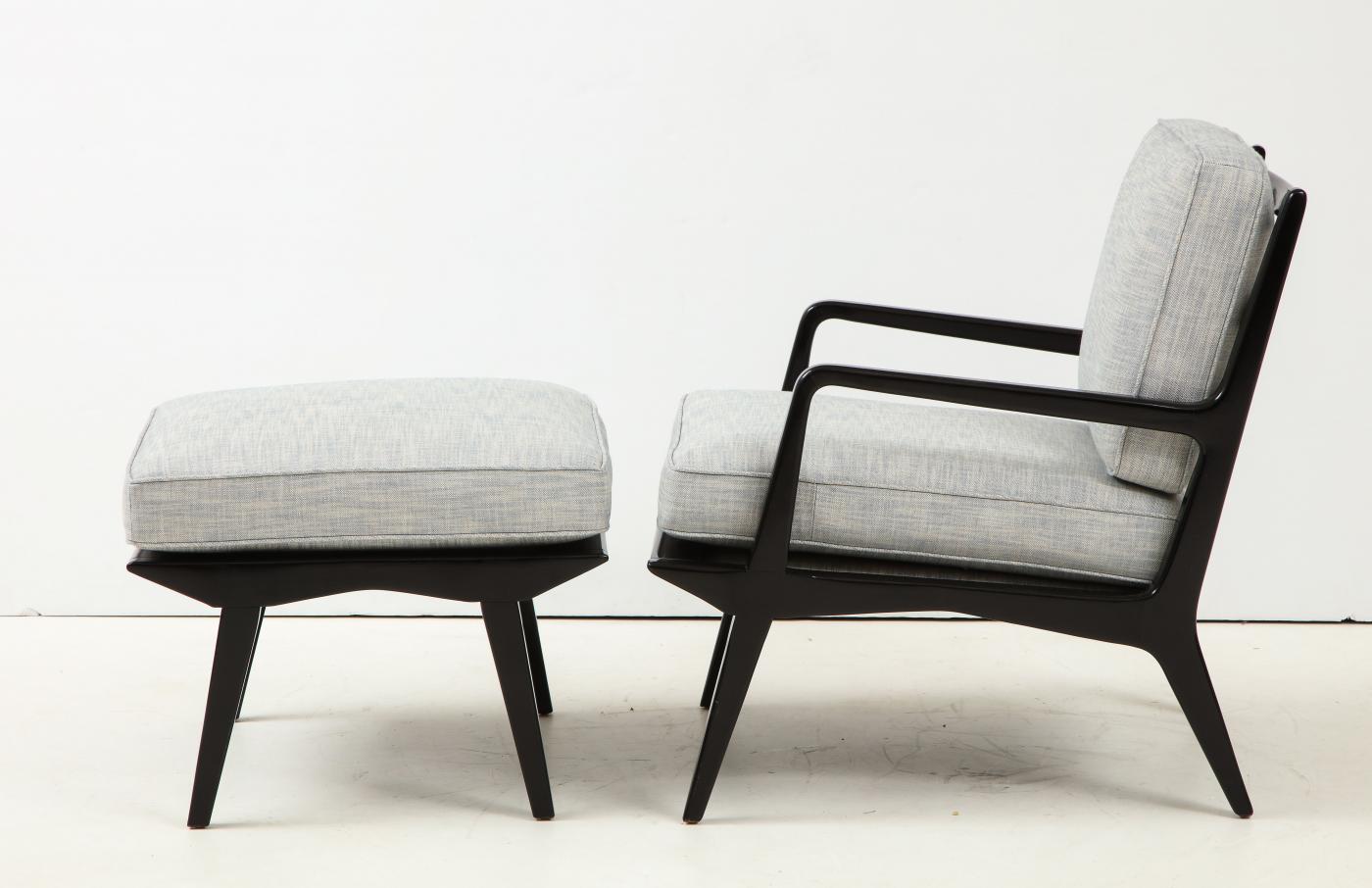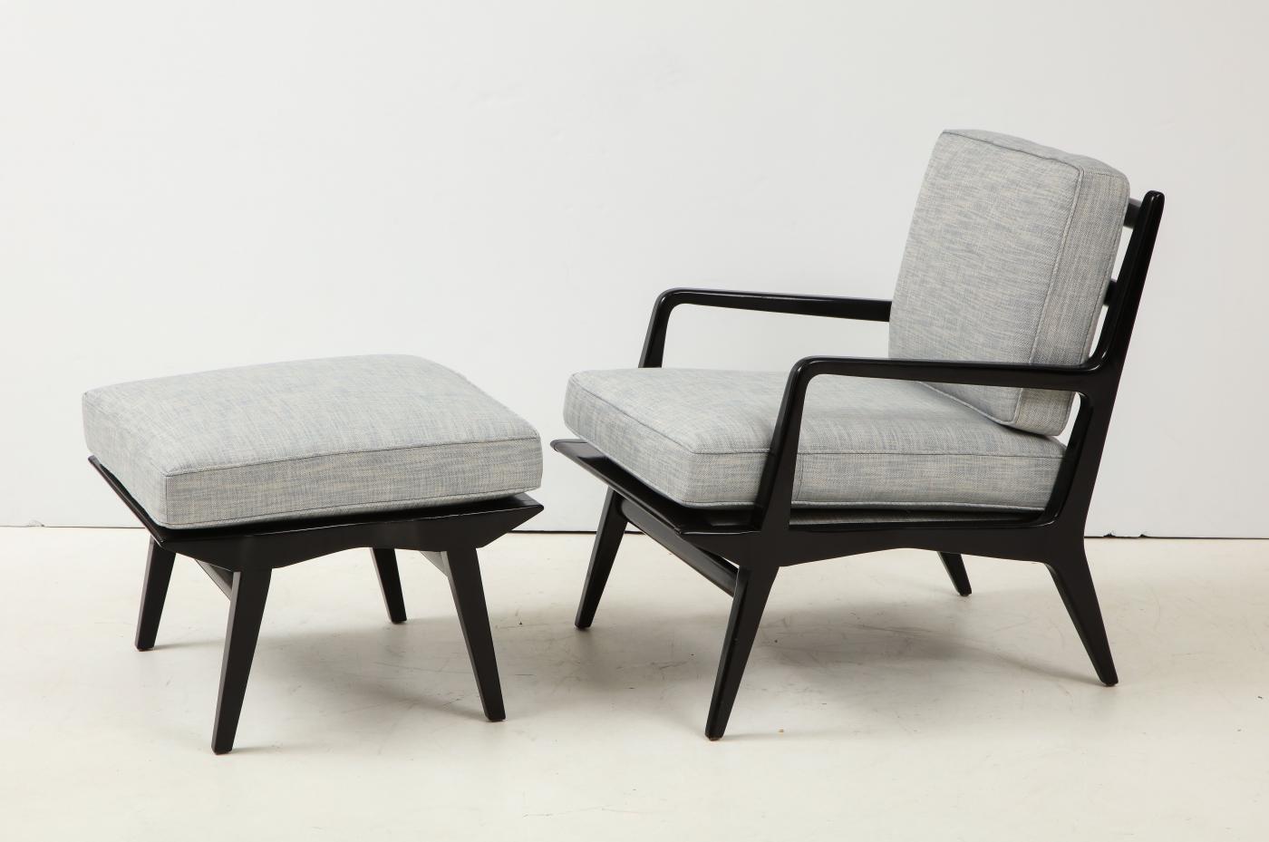 "Mid Century Modern Lounge chair and ottoman. Designed by Carlo di Carli for M. Singer & Sons. 1950's."