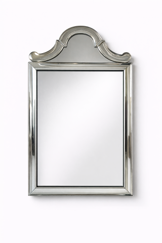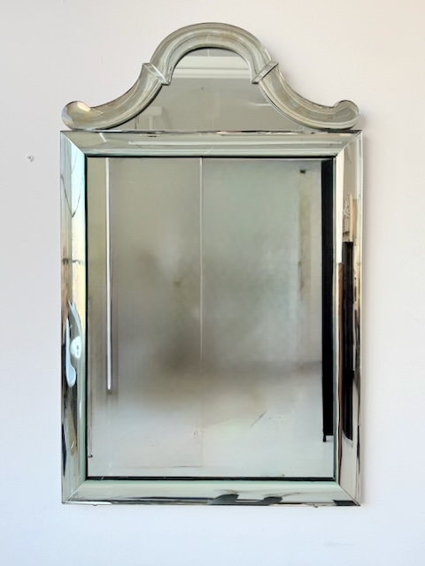 Mid Century Mirror on Cast Glass Frame. Hollywood Regency Style. 1970's Scooped corners and molded details.