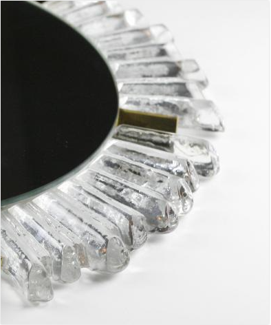 Mid Century Modern Sunburst Crystal Mirror by Kalmar. With brass details.