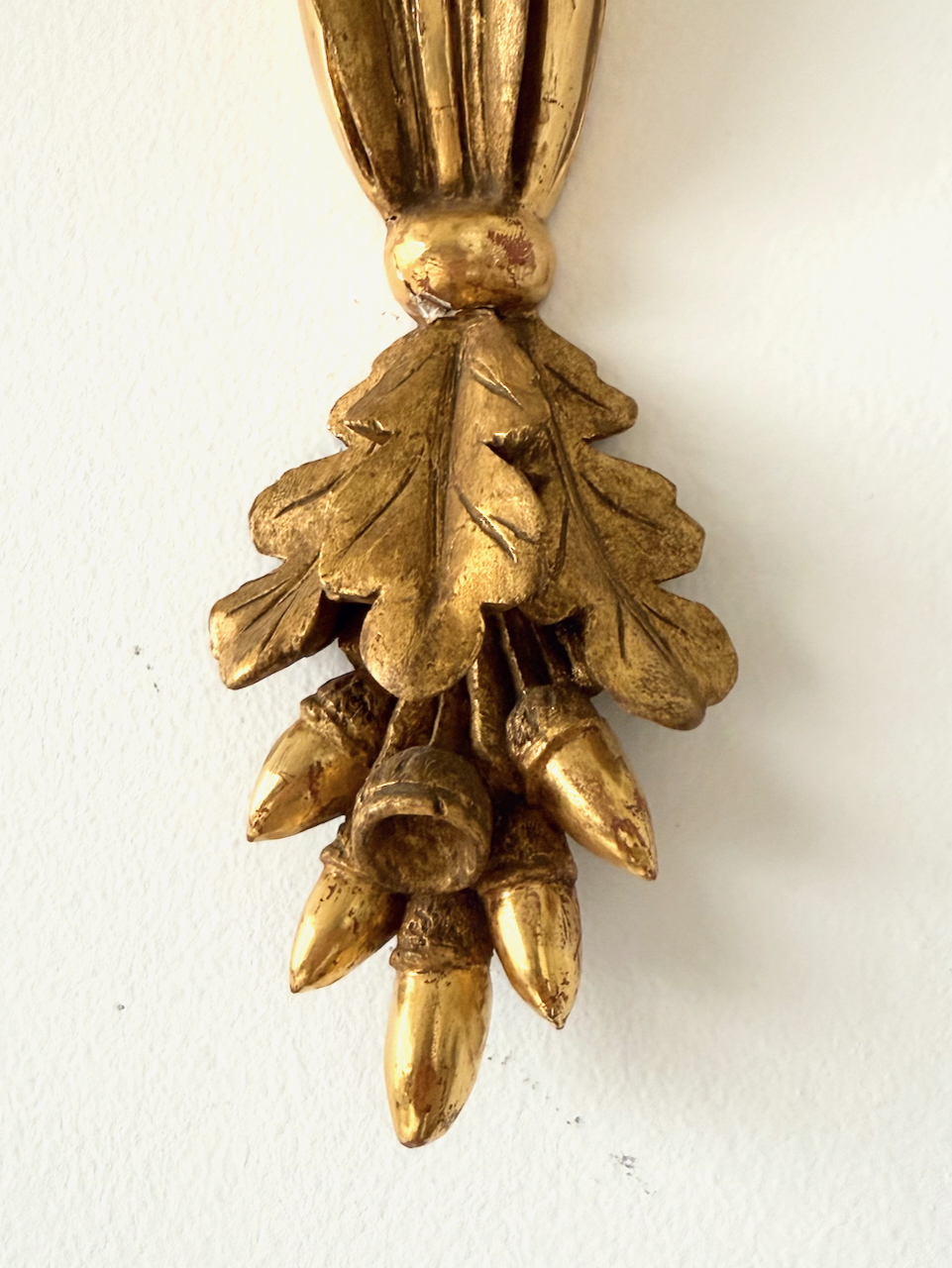 Pair of Louis XVI Style Gilt Wood Candle Sconces, with bronze and ebonized wood details. France Mid 19th Century