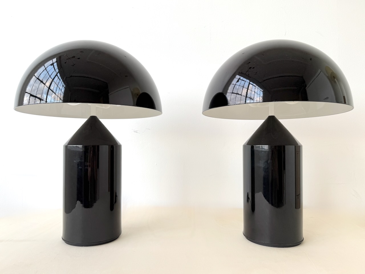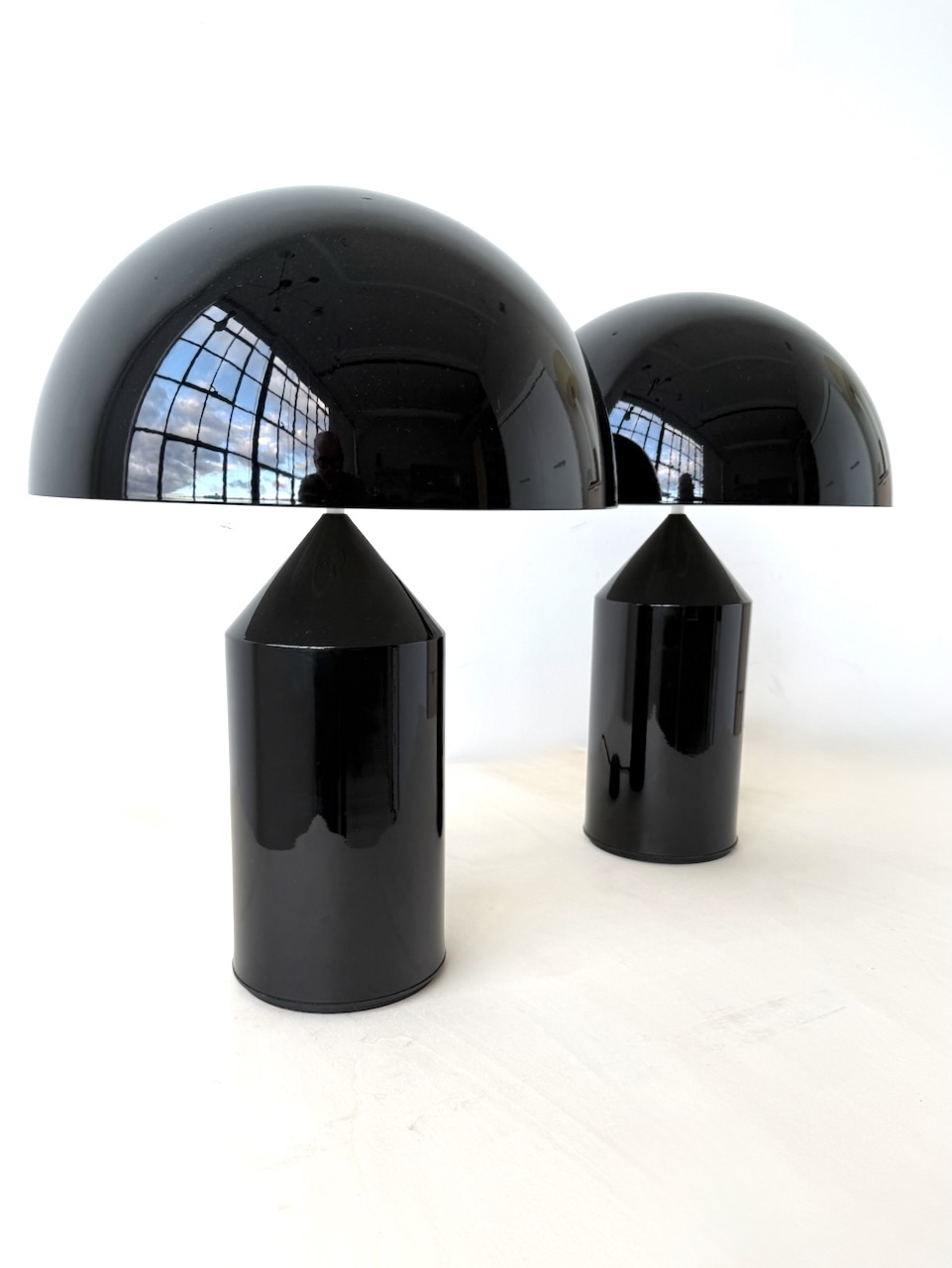 Pair of Oluce Atollo Medium Table Lamps in Black Metal, designed by Vico Magistretti, 1977. Italian design, made in Spain.