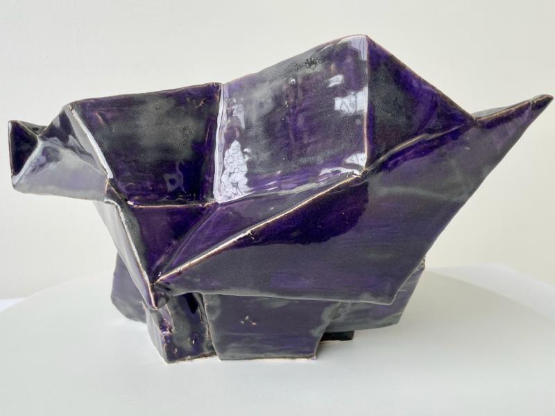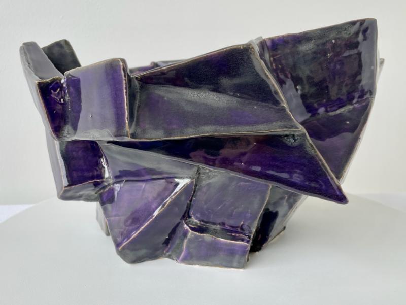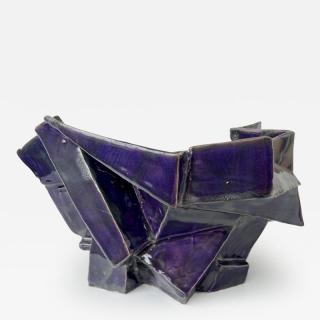 R.A. Pesce Cubist Ceramic Vessel, Obergine Glaze