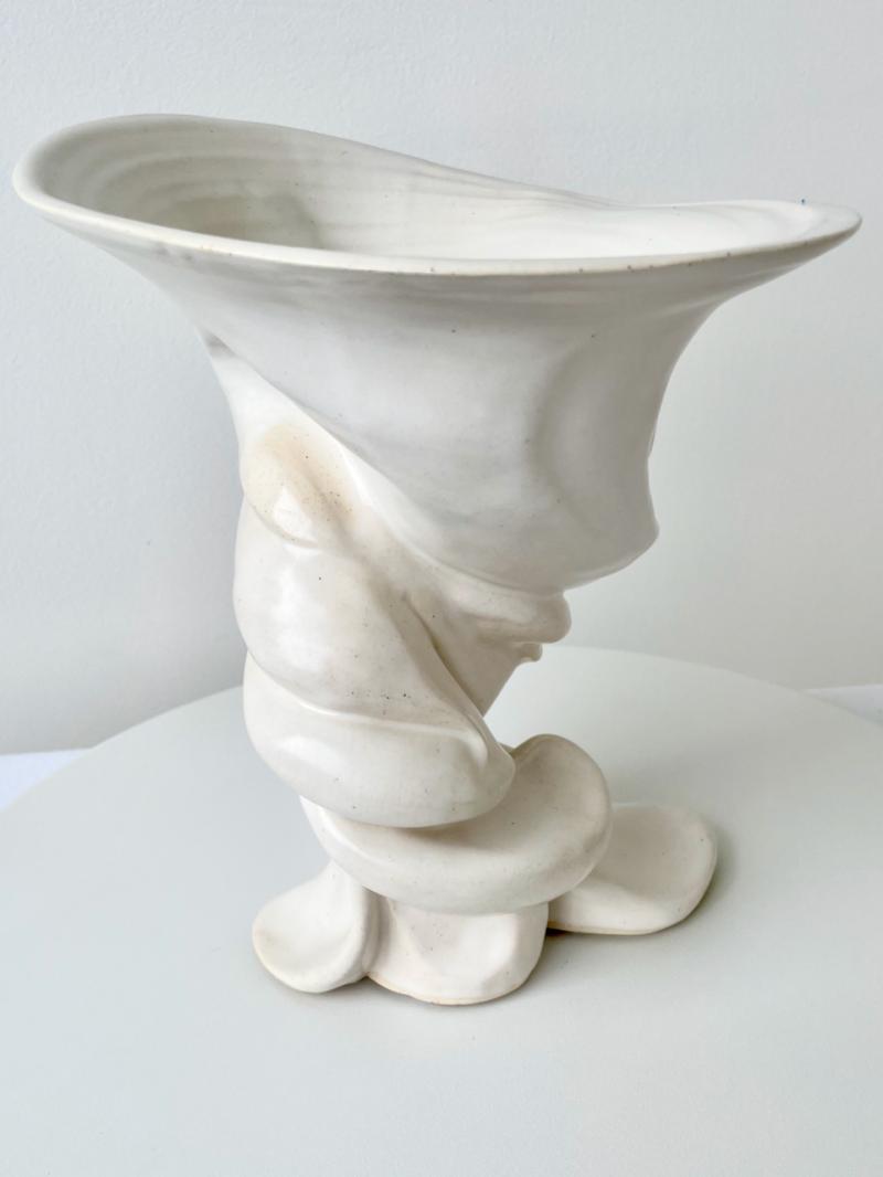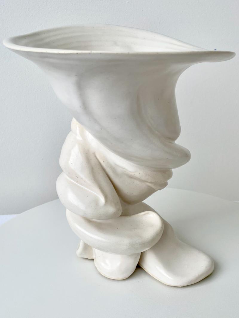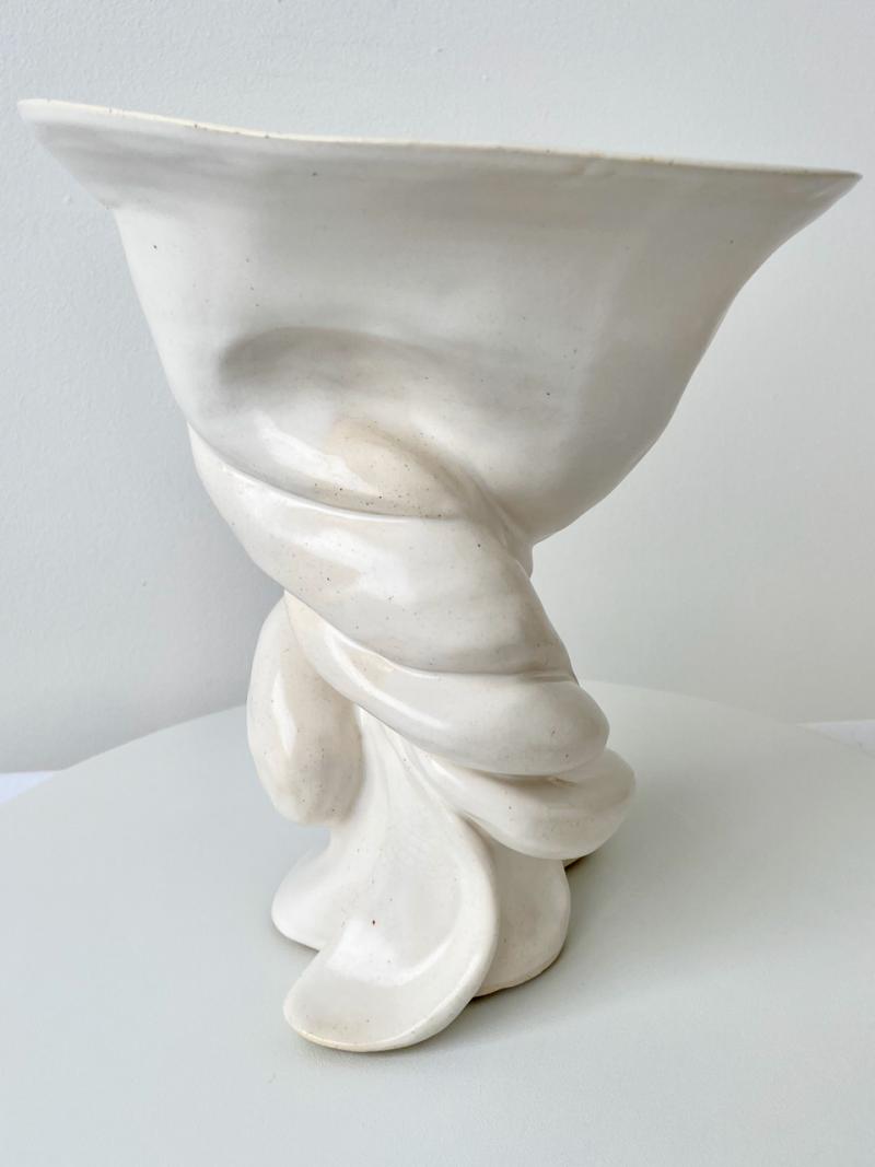 R.A. Pesce Tornado Vessel, Ivory Glaze, Wheel-Thrown Hand-manipulated Biomorphic Vessel. Signed "RP," American