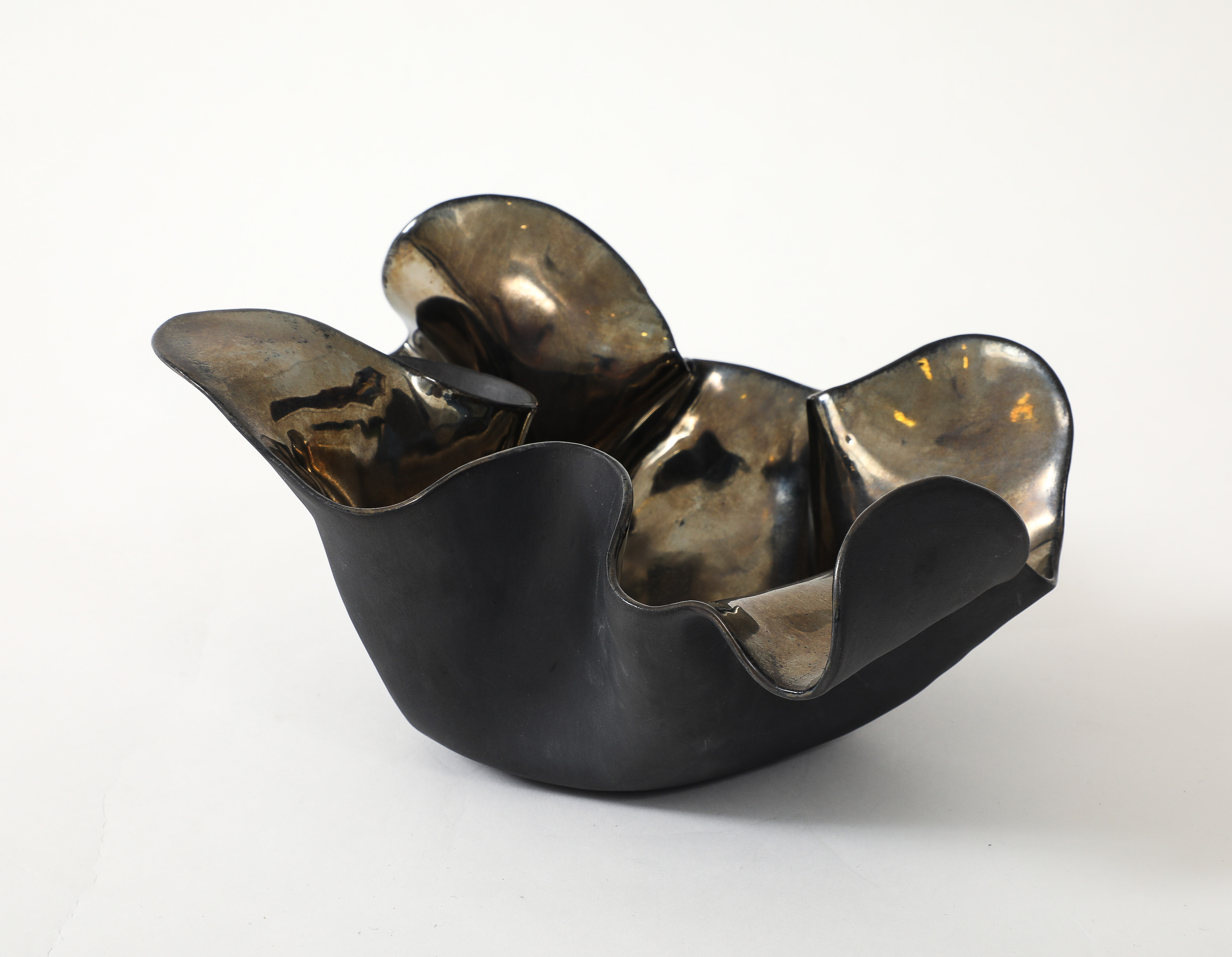 Set of 3 Organic Shaped Ceramic Bowls in Platinum Finish by Aram Chenensky. Stamped "Aram C."